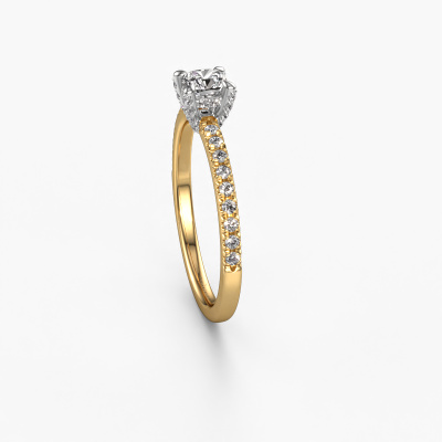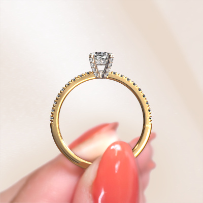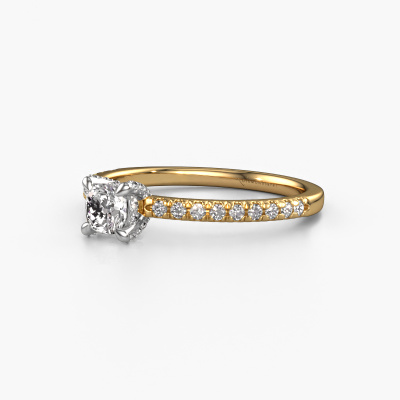 La bague de fiançailles mentionnée ci-dessus a été nommée Saskia 1 cus. Ce type de bague de fiançailles est appelé une bague de fiançailles solitaire pavé car elle ne comporte qu’une seule pierre centrale et les tiges de la bague de fiançailles sont également pleins. La bague de fiançailles est faite dans une combinaison d'or 14 Carat et d’or blanc et a un diamant coussin d’une de 0.33 crt, et des diamants sont sertis sur les épaules de l’anneau. Chaque bijou est fabriquée par une équipe d'orfèvres et de designers motivés. Cela permettra à cette pièce unique d'attirer tous les regards. Cette bague de fiançailles solitaire pavé forgée en or jaune uniques a un beau diamants coussin comme pierre centrale, avec plus de diamants sertis dans la bague pour accentuer encore plus la présence de la pierre centrale. Le sertissage à griffes autour du diamant étant ouvert, le diamant capte la lumière de tous les côtés et brille de manière optimale. Ci-dessus, vous pouvez voir comment notre orfèvre travaille la bague de fiançailles avec une extrême précision dans les moindres détails, de telle sorte que le diamant élevé puisse attirer tous les regards. Quelle belle bague de fiançailles à offrir lors de votre demande en mariage à l'amour de votre vie, à votre centre rayonnant ! En combinant les dernières techniques modernes, associées à une fabrication ancienne, nous sommes en mesure de fabriquer nos bagues de fiançailles dans notre propre studio. Chaque bijou est fabriqué sur commande. Ceci est avantageux car nous sommes en mesure de vous proposer un prix que vous ne trouverez nulle part ailleurs.Notre équipe ajoute quotidiennement de nouveaux modèles à notre collection en ligne. Nos designers et orfèvres travaillent ensemble pour créer le meilleur design. Nous nous efforçons d'offrir une collection diversifiée de bijoux. Peut-être avez-vous déjà en tête un bijou en particulier ? Un bijou que vous avez trouvé quelque part. Veuillez nous contacter pour une consultation gratuite. Nous vous ferons une offre, basée sur un rapport qualité / prix juste, qui vous déconcertera.Pour vous faciliter la tâche, vous pouvez facilement nous retourner tout bijou commandé dans les 30 jours suivant la livraison.