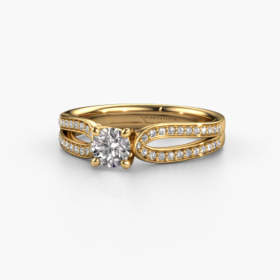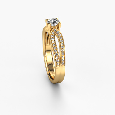 La bague de fiançailles mentionnée ci-dessus a été nommée Antonia rnd 2. Ce type de bague de fiançailles est appelé une bague de fiançailles solitaire pavé car elle ne comporte qu’une seule pierre centrale et les tiges de la bague de fiançailles sont également pleins. La bague de fiançailles est faite dans une combinaison d'or 14 Carat et d’or jaune et a un diamant ronds d’une de 0.40 crt, et des diamants sont sertis sur les épaules de l’anneau. Chaque bijou est spécialement conçues pour vous, avec une attention particulière portée aux détails et au design. Cette bague de fiançailles solitaire pavé forgée en or jaune traditionnelles a un beau diamants ronds comme pierre centrale, avec plus de diamants sertis dans la bague pour accentuer encore plus la présence de la pierre centrale. Le sertissage à griffes autour du diamant étant ouvert, le diamant capte la lumière de tous les côtés et brille de manière optimale. Ci-dessus, vous pouvez voir comment notre orfèvre travaille la bague de fiançailles avec une extrême précision dans les moindres détails, de telle sorte que le diamant élevé puisse attirer tous les regards. Quelle belle bague de fiançailles à offrir lors de votre demande en mariage à l'amour de votre vie, à votre centre rayonnant ! Nos orfèvres ne fabriqueront votre bague de fiançailles qu'une fois que vous l'aurez commandée. Nous ne faisons pas de stock. L'avantage de cela est que nous n'avons pas à inclure les frais de stockage dans nos prix, et nous pouvons donc vous offrir des bijoux à un prix très bas.Avez-vous déjà des bague de fiançailles spécifiques en tête ? Une bague de fiançailles que vous avez vu quelque part. N'hésitez pas à nous faire part de vos souhaits et nous transformerons votre design en des bague de fiançailles uniques. Vous êtes en mesure de suivre l'évolution de la conception de vos bague de fiançailles car nous utilisons des dessins en 3D. Cela vous donnera un aperçu réaliste de votre design. Nous vous enverrons volontiers une offre sans engagement basée sur un rapport qualité / prix juste. Elle va vous étonner.Pour vous faciliter la tâche, vous pouvez facilement nous retourner tout bijou commandé dans les 30 jours suivant la livraison.