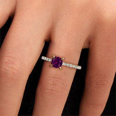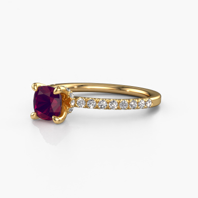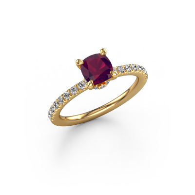 La bague de fiançailles mentionnée ci-dessus a été nommée Crystal CUS 4. Ce type de bague de fiançailles est appelé une bague de fiançailles solitaire pavé car elle ne comporte qu’une seule pierre centrale et les tiges de la bague de fiançailles sont également pleins. La bague de fiançailles est faite dans une combinaison d'or 14 Carat et d’or jaune et a un rhodolite coussin d’une de 5.5 mm, et des diamants sont sertis sur les épaules de l’anneau. Chaque bijou est faite pour briller sur votre doigt, chaque bijou est fabriqué à la main par nos orfèvres. Cette bague de fiançailles solitaire pavé forgée en or jaune élégants a un beau rhodolites coussin comme pierre centrale, avec plus de rhodolites sertis dans la bague pour accentuer encore plus la présence de la pierre centrale. Le sertissage à griffes autour du rhodolite étant ouvert, le rhodolite capte la lumière de tous les côtés et brille de manière optimale. Ci-dessus, vous pouvez voir comment notre orfèvre travaille la bague de fiançailles avec une extrême précision dans les moindres détails, de telle sorte que le rhodolite élevé puisse attirer tous les regards. Quelle belle bague de fiançailles à offrir lors de votre demande en mariage à l'amour de votre vie, à votre centre rayonnant ! Qu'y a-t-il dorénavant de plus beau qu'une bague de fiançailles élégants conçue par vous-même et fabriquée à la main par nous. Vous pouvez personnaliser chaque modèle avec les différents métaux précieux et pierres précieuses. De cette façon, vous pourrez créer une bague de fiançailles unique. Cette bague peut être mise en place de plusieurs façons. Bien sûr, vous pouvez toujours nous contacter et nous serons heureux de vous aider à composer votre bague de fiançailles élégants Crystal CUS 4. Vous aimez le design, mais vous souhaitez tout de même quelque chose qui vous convienne plus, ou bien vous souhaitez une pierre précieuse dans les bijoux que vous ne pouvez pas choisir sur notre site, contactez-nous et nous vous aiderons.Avez-vous déjà des bague de fiançailles spécifiques en tête ? Une bague de fiançailles que vous avez vu quelque part. N'hésitez pas à nous faire part de vos souhaits et nous transformerons votre design en des bague de fiançailles uniques. Vous êtes en mesure de suivre l'évolution de la conception de vos bague de fiançailles car nous utilisons des dessins en 3D. Cela vous donnera un aperçu réaliste de votre design. Nous vous enverrons volontiers une offre sans engagement basée sur un rapport qualité / prix juste. Elle va vous étonner.Pour vous faciliter la tâche, vous pouvez facilement nous retourner tout bijou commandé dans les 30 jours suivant la livraison.