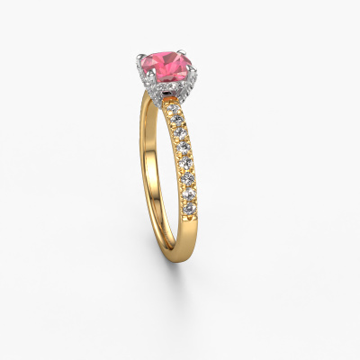 La bague de fiançailles mentionnée ci-dessus a été nommée Saskia 1 cus. Ce type de bague de fiançailles est appelé une bague de fiançailles solitaire pavé car elle ne comporte qu’une seule pierre centrale et les tiges de la bague de fiançailles sont également pleins. La bague de fiançailles est faite dans une combinaison d'or 14 Carat et d’or blanc et a un rose tourmaline coussin d’une de 5.5 mm, et des diamants sont sertis sur les épaules de l’anneau. Chaque bijou est fabriquée par une équipe d'orfèvres et de designers motivés. Cela permettra à cette pièce unique d'attirer tous les regards. Cette bague de fiançailles solitaire pavé forgée en or jaune uniques a un beau rose tourmaline coussin comme pierre centrale, avec plus de rose tourmaline sertis dans la bague pour accentuer encore plus la présence de la pierre centrale. Le sertissage à griffes autour du rose tourmaline étant ouvert, le rose tourmaline capte la lumière de tous les côtés et brille de manière optimale. Ci-dessus, vous pouvez voir comment notre orfèvre travaille la bague de fiançailles avec une extrême précision dans les moindres détails, de telle sorte que le rose tourmaline élevé puisse attirer tous les regards. Quelle belle bague de fiançailles à offrir lors de votre demande en mariage à l'amour de votre vie, à votre centre rayonnant ! En combinant les dernières techniques modernes, associées à une fabrication ancienne, nous sommes en mesure de fabriquer nos bagues de fiançailles dans notre propre studio. Chaque bijou est fabriqué sur commande. Ceci est avantageux car nous sommes en mesure de vous proposer un prix que vous ne trouverez nulle part ailleurs.Notre équipe ajoute quotidiennement de nouveaux modèles à notre collection en ligne. Nos designers et orfèvres travaillent ensemble pour créer le meilleur design. Nous nous efforçons d'offrir une collection diversifiée de bijoux. Peut-être avez-vous déjà en tête un bijou en particulier ? Un bijou que vous avez trouvé quelque part. Veuillez nous contacter pour une consultation gratuite. Nous vous ferons une offre, basée sur un rapport qualité / prix juste, qui vous déconcertera.Pour vous faciliter la tâche, vous pouvez facilement nous retourner tout bijou commandé dans les 30 jours suivant la livraison.
