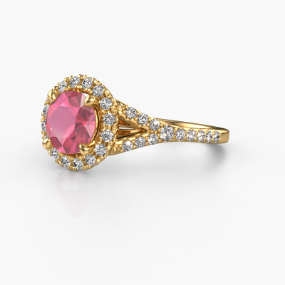 La bague de fiançailles mentionnée ci-dessus a été nommée Kimber RND. Ce type de bague de fiançailles est appelé une bague de fiançailles solitaire pavé car elle ne comporte qu’une seule pierre centrale et les tiges de la bague de fiançailles sont également pleins. La bague de fiançailles est faite dans une combinaison d'or 14 Carat et d’or jaune et a un rose tourmaline ronds d’une de 7 mm, et des diamants synthétiques sont sertis sur les épaules de l’anneau. Chaque bijou est faite pour briller sur votre doigt, chaque bijou est fabriqué à la main par nos orfèvres. Cette bague de fiançailles solitaire pavé forgée en or jaune classiques a un beau rose tourmaline ronds comme pierre centrale, avec plus de rose tourmaline sertis dans la bague pour accentuer encore plus la présence de la pierre centrale. Le sertissage à griffes autour du rose tourmaline étant ouvert, le rose tourmaline capte la lumière de tous les côtés et brille de manière optimale. Ci-dessus, vous pouvez voir comment notre orfèvre travaille la bague de fiançailles avec une extrême précision dans les moindres détails, de telle sorte que le rose tourmaline élevé puisse attirer tous les regards. Quelle belle bague de fiançailles à offrir lors de votre demande en mariage à l'amour de votre vie, à votre centre rayonnant ! Saviez-vous que nous offrons la garantie du meilleur prix pour votre bague de fiançailles? Cela est possible car tous nos bijoux sont fabriqués à la main dans notre propre atelier. Nous n'avons pas de frais de stocks qui sont coûteux, et nous fabriquons votre bague uniquement une fois que vous l'avez commandée. Grâce au fait que nous ayons toute la production du bijou en main, nous pouvons vous informer sur toutes les caractéristiques de cette bague de fiançailles. C’est précisément parce que l’achat d’une bague en ligne est une expérience excitante que nous comprenons qu’il est plus confortable pour vous de connaître toutes les caractéristiques de votre bague.Notre équipe ajoute quotidiennement de nouveaux modèles à notre collection en ligne. Nos designers et orfèvres travaillent ensemble pour créer le meilleur design. Nous nous efforçons d'offrir une collection diversifiée de bijoux. Peut-être avez-vous déjà en tête un bijou en particulier ? Un bijou que vous avez trouvé quelque part. Veuillez nous contacter pour une consultation gratuite. Nous vous ferons une offre, basée sur un rapport qualité / prix juste, qui vous déconcertera.Pour vous faciliter la tâche, vous pouvez facilement nous retourner tout bijou commandé dans les 30 jours suivant la livraison.