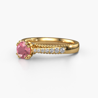 La bague de fiançailles mentionnée ci-dessus a été nommée Rozella. Ce type de bague de fiançailles est appelé une bague de fiançailles solitaire pavé car elle ne comporte qu’une seule pierre centrale et les tiges de la bague de fiançailles sont également pleins. La bague de fiançailles est faite dans une combinaison d'or 14 Carat et d’or jaune et a un rose tourmaline ronds d’une de 5.5 mm, et des diamants synthétiques sont sertis sur les épaules de l’anneau. Chaque bijou est fabriquées avec passion et amour par l'un de nos maîtres orfèvres. Cette bague de fiançailles solitaire pavé forgée en or jaune uniques a un beau rose tourmaline ronds comme pierre centrale, avec plus de rose tourmaline sertis dans la bague pour accentuer encore plus la présence de la pierre centrale. Le sertissage à griffes autour du rose tourmaline étant ouvert, le rose tourmaline capte la lumière de tous les côtés et brille de manière optimale. Ci-dessus, vous pouvez voir comment notre orfèvre travaille la bague de fiançailles avec une extrême précision dans les moindres détails, de telle sorte que le rose tourmaline élevé puisse attirer tous les regards. Quelle belle bague de fiançailles à offrir lors de votre demande en mariage à l'amour de votre vie, à votre centre rayonnant ! Nos orfèvres ne fabriqueront votre bague de fiançailles qu'une fois que vous l'aurez commandée. Nous ne faisons pas de stock. L'avantage de cela est que nous n'avons pas à inclure les frais de stockage dans nos prix, et nous pouvons donc vous offrir des bijoux à un prix très bas.Notre équipe de designers talentueux et passionnés ajoute chaque jour de nouveaux modèles bague de fiançailles à notre collection en ligne. Notre objectif est de pouvoir vous offrir une grande variété de bijoux. N'hésitez pas à demander un devis si vous avez des souhaits spécifiques pour votre bague de fiançailles. Nous garantissons de vous faire une offre que vous ne pourrez pas refuser.Pour vous faciliter la tâche, vous pouvez facilement nous retourner tout bijou commandé dans les 30 jours suivant la livraison.