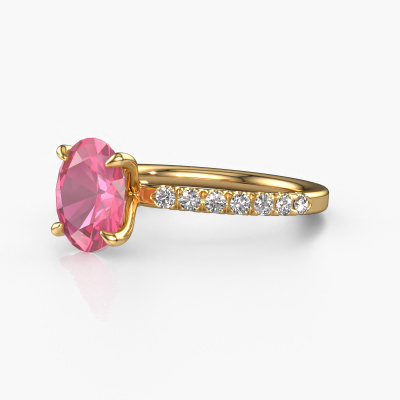La bague de fiançailles mentionnée ci-dessus a été nommée Crystal OVL 2. Ce type de bague de fiançailles est appelé une bague de fiançailles solitaire pavé car elle ne comporte qu’une seule pierre centrale et les tiges de la bague de fiançailles sont également pleins. La bague de fiançailles est faite dans une combinaison d'or 14 Carat et d’or jaune et a un saphir rose ovale d’une de 9x7 mm, et des diamants synthétiques sont sertis sur les épaules de l’anneau. Chaque bijou est fabriquée spécialement pour vous par nos maîtres orfèvres dans notre propre atelier. Cette bague de fiançailles solitaire pavé forgée en or jaune exclusives a un beau saphirs roses ovale comme pierre centrale, avec plus de saphirs roses sertis dans la bague pour accentuer encore plus la présence de la pierre centrale. Le sertissage à griffes autour du saphir rose étant ouvert, le saphir rose capte la lumière de tous les côtés et brille de manière optimale. Ci-dessus, vous pouvez voir comment notre orfèvre travaille la bague de fiançailles avec une extrême précision dans les moindres détails, de telle sorte que le saphir rose élevé puisse attirer tous les regards. Quelle belle bague de fiançailles à offrir lors de votre demande en mariage à l'amour de votre vie, à votre centre rayonnant ! En combinant les dernières techniques modernes, associées à une fabrication ancienne, nous sommes en mesure de fabriquer nos bagues de fiançailles dans notre propre studio. Chaque bijou est fabriqué sur commande. Ceci est avantageux car nous sommes en mesure de vous proposer un prix que vous ne trouverez nulle part ailleurs.Notre équipe ajoute quotidiennement de nouveaux modèles à notre collection en ligne. Nos designers et orfèvres travaillent ensemble pour créer le meilleur design. Nous nous efforçons d'offrir une collection diversifiée de bijoux. Peut-être avez-vous déjà en tête un bijou en particulier ? Un bijou que vous avez trouvé quelque part. Veuillez nous contacter pour une consultation gratuite. Nous vous ferons une offre, basée sur un rapport qualité / prix juste, qui vous déconcertera.Pour vous faciliter la tâche, vous pouvez facilement nous retourner tout bijou commandé dans les 30 jours suivant la livraison.