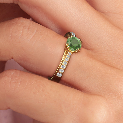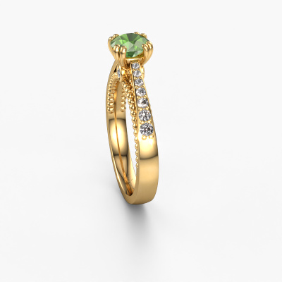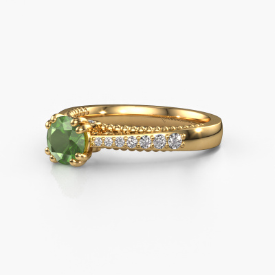 La bague de fiançailles mentionnée ci-dessus a été nommée Rozella. Ce type de bague de fiançailles est appelé une bague de fiançailles solitaire pavé car elle ne comporte qu’une seule pierre centrale et les tiges de la bague de fiançailles sont également pleins. La bague de fiançailles est faite dans une combinaison d'or 14 Carat et d’or jaune et a un vert tourmaline ronds d’une de 5.5 mm, et des diamants synthétiques sont sertis sur les épaules de l’anneau. Chaque bijou est fabriquées avec passion et amour par l'un de nos maîtres orfèvres. Cette bague de fiançailles solitaire pavé forgée en or jaune uniques a un beau vert tourmaline ronds comme pierre centrale, avec plus de vert tourmaline sertis dans la bague pour accentuer encore plus la présence de la pierre centrale. Le sertissage à griffes autour du vert tourmaline étant ouvert, le vert tourmaline capte la lumière de tous les côtés et brille de manière optimale. Ci-dessus, vous pouvez voir comment notre orfèvre travaille la bague de fiançailles avec une extrême précision dans les moindres détails, de telle sorte que le vert tourmaline élevé puisse attirer tous les regards. Quelle belle bague de fiançailles à offrir lors de votre demande en mariage à l'amour de votre vie, à votre centre rayonnant ! Nos orfèvres ne fabriqueront votre bague de fiançailles qu'une fois que vous l'aurez commandée. Nous ne faisons pas de stock. L'avantage de cela est que nous n'avons pas à inclure les frais de stockage dans nos prix, et nous pouvons donc vous offrir des bijoux à un prix très bas.Notre équipe de designers talentueux et passionnés ajoute chaque jour de nouveaux modèles bague de fiançailles à notre collection en ligne. Notre objectif est de pouvoir vous offrir une grande variété de bijoux. N'hésitez pas à demander un devis si vous avez des souhaits spécifiques pour votre bague de fiançailles. Nous garantissons de vous faire une offre que vous ne pourrez pas refuser.Pour vous faciliter la tâche, vous pouvez facilement nous retourner tout bijou commandé dans les 30 jours suivant la livraison.