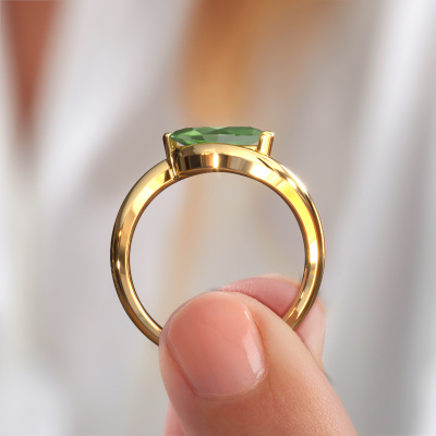 Le nom de cette bague de fiançailles est Aida MRQ. Elle est forgée en or 14 Carat et est sertie d'un vert tourmaline de 11x5.5 mm. Votre petit-amie aime-t-elle les accessoires au look unique ? Ou bien voudriez-vous lui montrer qu'elle ne mérite