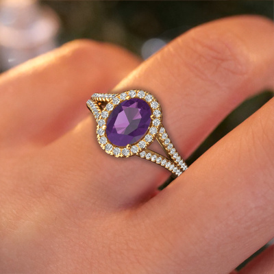 Le nom de cette bague de fiançailles est Verla ovl 2. Elle est forgée en or 14 Carat et est sertie d'un améthyste de 8x6 mm. Votre petit-amie aime-t-elle les accessoires au look unique ? Ou bien voudriez-vous lui montrer qu'elle ne mérite que le meilleur bijou ? Dans cette bague de fiançailles forgée en or jaune, le savoir-faire, l'amour et la passion se mêlent aux techniques d’orfèvres les plus récentes. Il faut un œil expérimenté, de la patience et une main habile pour concevoir parfaitement cette bague de fiançailles dans les moindres détails. Et c'est exactement le travail que nos orfèvres recherchent ! Le sertissage de ces améthystes soigneusement sélectionnés donne à la bague de fiançailles bandes séparées forgée en or jaune une allure supplémentaire. Le style peut être adapté au goût de votre petite amie grâce à un large choix de métaux précieux et de pierres précieuses. De cette manière, vous pouvez créer une bague de fiançailles unique pour la femmes la plus unique de votre vie ! Ce bijou est fabriquée par une équipe d'orfèvres et de designers motivés. Cela permettra à cette pièce unique d'attirer tous les regards.Qu'y a-t-il dorénavant de plus beau qu'une bague de fiançailles exclusives conçue par vous-même et fabriquée à la main par nous. Vous pouvez personnaliser chaque modèle avec les différents métaux précieux et pierres précieuses. De cette façon, vous pourrez créer une bague de fiançailles unique. Cette bague peut être mise en place de plusieurs façons. Bien sûr, vous pouvez toujours nous contacter et nous serons heureux de vous aider à composer votre bague de fiançailles exclusives Verla ovl 2. Vous aimez le design, mais vous souhaitez tout de même quelque chose qui vous convienne plus, ou bien vous souhaitez une pierre précieuse dans les bijoux que vous ne pouvez pas choisir sur notre site, contactez-nous et nous vous aiderons. Notre équipe ajoute quotidiennement de nouveaux modèles à notre collection en ligne. Nos designers et orfèvres travaillent ensemble pour créer le meilleur design. Nous nous efforçons d'offrir une collection diversifiée de bijoux. Peut-être avez-vous déjà en tête un bijou en particulier ? Un bijou que vous avez trouvé quelque part. Veuillez nous contacter pour une consultation gratuite. Nous vous ferons une offre, basée sur un rapport qualité / prix juste, qui vous déconcertera.Pour vous faciliter la tâche, vous pouvez facilement nous retourner tout bijou commandé dans les 30 jours suivant la livraison.