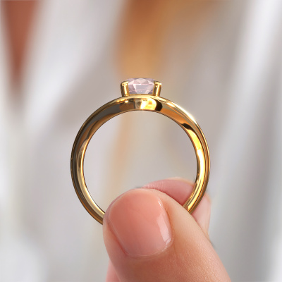 Le nom de cette bague de fiançailles est Femke OVL. Elle est forgée en or 14 Carat et est sertie d'un champagne morganite de 8x6 mm. Votre petit-amie aime-t-elle les accessoires au look unique ? Ou bien voudriez-vous lui montrer qu'elle ne mérite