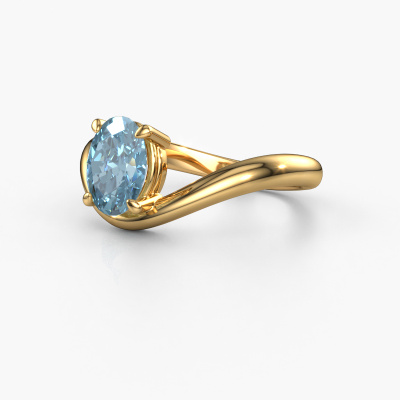 Le nom de cette bague de fiançailles est Femke OVL. Elle est forgée en or 14 Carat et est sertie d'un diamant synthétique bleu de 8x6 mm. Votre petit-amie aime-t-elle les accessoires au look unique ? Ou bien voudriez-vous lui montrer qu'elle ne