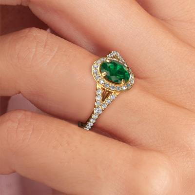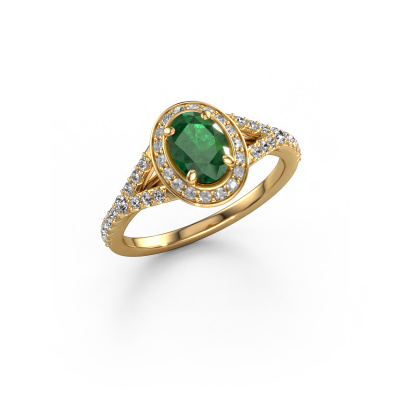 La bague de fiançailles mentionnée ci-dessus est nommée Pamela OVL. Nous appelons ce type de bague de fiançailles une bague Halo. La bague de fiançailles est forgée en or 14 Carat et comporte un emeraude ovale de la de 7x5 mm et autour duquel sont sertis de petits diamants synthétiques. La largeur de cette bague de fiançailles halo forgée en or jaune luxes vient des plus petites pierres précieuses qui sont serties autour du large emeraude central. C’est également ce à partir de quoi cette belle bague de fiançailles tire son nom : halo signifie halo et c’est aussi l’effet que rendent les pierres précieuses plus petites. Cependant, ces pierres précieuses plus petites doivent toutes être serties de la même manière, afin que la lumière ne soit pas seulement introduite dans le emeraude et qu’un véritable halo de lumière soit créé. Et c'est ce que font nos maîtres orfèvres. Avec la plus grande précision, chaque emeraude soigneusement sélectionné est placé à la main dans la bague de fiançailles. Encore et encore, la bague de fiançailles est maintenue à la lumière pour voir si l'effet spécial est toujours visible. Le résultat est une bague de fiançailles unique, où le emeraude choisi devient littéralement le centre brillants. Vous pouvez imaginer que cette bague de fiançailles est vraiment une bague de fiançailles significative à offrir à votre amour de la vie ! Le jour où vous montrez qu’elle est votre centre brillants ! Qu'y a-t-il dorénavant de plus beau qu'une bague de fiançailles luxes conçue par vous-même et fabriquée à la main par nous. Vous pouvez personnaliser chaque modèle avec les différents métaux précieux et pierres précieuses. De cette façon, vous pourrez créer une bague de fiançailles unique. Cette bague peut être mise en place de plusieurs façons. Bien sûr, vous pouvez toujours nous contacter et nous serons heureux de vous aider à composer votre bague de fiançailles luxes Pamela OVL. Vous aimez le design, mais vous souhaitez tout de même quelque chose qui vous convienne plus, ou bien vous souhaitez une pierre précieuse dans les bijoux que vous ne pouvez pas choisir sur notre site, contactez-nous et nous vous aiderons.Notre équipe ajoute quotidiennement de nouveaux modèles à notre collection en ligne. Nos designers et orfèvres travaillent ensemble pour créer le meilleur design. Nous nous efforçons d'offrir une collection diversifiée de bijoux. Peut-être avez-vous déjà en tête un bijou en particulier ? Un bijou que vous avez trouvé quelque part. Veuillez nous contacter pour une consultation gratuite. Nous vous ferons une offre, basée sur un rapport qualité / prix juste, qui vous déconcertera.Pour vous faciliter la tâche, vous pouvez facilement nous retourner tout bijou commandé dans les 30 jours suivant la livraison.