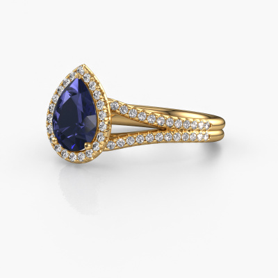 La bague de fiançailles mentionnée ci-dessus est nommée Verla pear 2. Nous appelons ce type de bague de fiançailles une bague Halo. La bague de fiançailles est forgée en or 14 Carat et comporte un saphir poire de la de 8x6 mm et autour duquel sont sertis de petits diamants. La largeur de cette bague de fiançailles halo forgée en or jaune exclusives vient des plus petites pierres précieuses qui sont serties autour du large saphir central. C’est également ce à partir de quoi cette belle bague de fiançailles tire son nom : halo signifie halo et c’est aussi l’effet que rendent les pierres précieuses plus petites. Cependant, ces pierres précieuses plus petites doivent toutes être serties de la même manière, afin que la lumière ne soit pas seulement introduite dans le saphir et qu’un véritable halo de lumière soit créé. Et c'est ce que font nos maîtres orfèvres. Avec la plus grande précision, chaque saphir soigneusement sélectionné est placé à la main dans la bague de fiançailles. Encore et encore, la bague de fiançailles est maintenue à la lumière pour voir si l'effet spécial est toujours visible. Le résultat est une bague de fiançailles unique, où le saphir choisi devient littéralement le centre brillants. Vous pouvez imaginer que cette bague de fiançailles est vraiment une bague de fiançailles significative à offrir à votre amour de la vie ! Le jour où vous montrez qu’elle est votre centre brillants ! Saviez-vous que nous offrons la garantie du meilleur prix pour votre bague de fiançailles? Cela est possible car tous nos bijoux sont fabriqués à la main dans notre propre atelier. Nous n'avons pas de frais de stocks qui sont coûteux, et nous fabriquons votre bague uniquement une fois que vous l'avez commandée. Grâce au fait que nous ayons toute la production du bijou en main, nous pouvons vous informer sur toutes les caractéristiques de cette bague de fiançailles. C’est précisément parce que l’achat d’une bague en ligne est une expérience excitante que nous comprenons qu’il est plus confortable pour vous de connaître toutes les caractéristiques de votre bague.Notre équipe de designers talentueux et passionnés ajoute chaque jour de nouveaux modèles bague de fiançailles à notre collection en ligne. Notre objectif est de pouvoir vous offrir une grande variété de bijoux. N'hésitez pas à demander un devis si vous avez des souhaits spécifiques pour votre bague de fiançailles. Nous garantissons de vous faire une offre que vous ne pourrez pas refuser.Pour vous faciliter la tâche, vous pouvez facilement nous retourner tout bijou commandé dans les 30 jours suivant la livraison.
