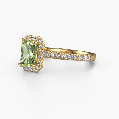 La bague de fiançailles mentionnée ci-dessus est nommée Miranda rad. Nous appelons ce type de bague de fiançailles une bague Halo. La bague de fiançailles est forgée en or 14 Carat et comporte un diamants synthétiques vert radiant de la de 7x5 mm et autour duquel sont sertis de petits diamants synthétiques. La largeur de cette bague de fiançailles halo forgée en or jaune exclusives vient des plus petites pierres précieuses qui sont serties autour du large diamants synthétiques vert central. C’est également ce à partir de quoi cette belle bague de fiançailles tire son nom : halo signifie halo et c’est aussi l’effet que rendent les pierres précieuses plus petites. Cependant, ces pierres précieuses plus petites doivent toutes être serties de la même manière, afin que la lumière ne soit pas seulement introduite dans le diamants synthétiques vert et qu’un véritable halo de lumière soit créé. Et c'est ce que font nos maîtres orfèvres. Avec la plus grande précision, chaque diamants synthétiques vert soigneusement sélectionné est placé à la main dans la bague de fiançailles. Encore et encore, la bague de fiançailles est maintenue à la lumière pour voir si l'effet spécial est toujours visible. Le résultat est une bague de fiançailles unique, où le diamants synthétiques vert choisi devient littéralement le centre brillants. Vous pouvez imaginer que cette bague de fiançailles est vraiment une bague de fiançailles significative à offrir à votre amour de la vie ! Le jour où vous montrez qu’elle est votre centre brillants ! Saviez-vous que nous offrons la garantie du meilleur prix pour votre bague de fiançailles? Cela est possible car tous nos bijoux sont fabriqués à la main dans notre propre atelier. Nous n'avons pas de frais de stocks qui sont coûteux, et nous fabriquons votre bague uniquement une fois que vous l'avez commandée. Grâce au fait que nous ayons toute la production du bijou en main, nous pouvons vous informer sur toutes les caractéristiques de cette bague de fiançailles. C’est précisément parce que l’achat d’une bague en ligne est une expérience excitante que nous comprenons qu’il est plus confortable pour vous de connaître toutes les caractéristiques de votre bague.Notre équipe ajoute quotidiennement de nouveaux modèles à notre collection en ligne. Nos designers et orfèvres travaillent ensemble pour créer le meilleur design. Nous nous efforçons d'offrir une collection diversifiée de bijoux. Peut-être avez-vous déjà en tête un bijou en particulier ? Un bijou que vous avez trouvé quelque part. Veuillez nous contacter pour une consultation gratuite. Nous vous ferons une offre, basée sur un rapport qualité / prix juste, qui vous déconcertera.Pour vous faciliter la tâche, vous pouvez facilement nous retourner tout bijou commandé dans les 30 jours suivant la livraison.