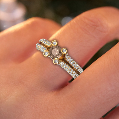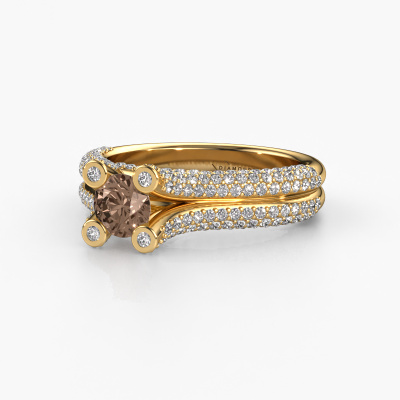 Le nom de cette bague de fiançailles est Stefanie 2. Elle est forgée en or 14 Carat et est sertie d'un diamant brun de 0.50 crt. Votre petit-amie aime-t-elle les accessoires au look unique ? Ou bien voudriez-vous lui montrer qu'elle ne mérite que le meilleur bijou ? Dans cette bague de fiançailles forgée en or jaune, le savoir-faire, l'amour et la passion se mêlent aux techniques d’orfèvres les plus récentes. Il faut un œil expérimenté, de la patience et une main habile pour concevoir parfaitement cette bague de fiançailles dans les moindres détails. Et c'est exactement le travail que nos orfèvres recherchent ! Le sertissage de ces diamants bruns soigneusement sélectionnés donne à la bague de fiançailles bandes séparées forgée en or jaune une allure supplémentaire. Le style peut être adapté au goût de votre petite amie grâce à un large choix de métaux précieux et de pierres précieuses. De cette manière, vous pouvez créer une bague de fiançailles unique pour la femmes la plus unique de votre vie ! Ce bijou est fabriquées spécialement pour vous par nos maîtres orfèvres dans notre propre atelier.Saviez-vous que nous offrons la garantie du meilleur prix pour votre bague de fiançailles? Cela est possible car tous nos bijoux sont fabriqués à la main dans notre propre atelier. Nous n'avons pas de frais de stocks qui sont coûteux, et nous fabriquons votre bague uniquement une fois que vous l'avez commandée. Grâce au fait que nous ayons toute la production du bijou en main, nous pouvons vous informer sur toutes les caractéristiques de cette bague de fiançailles. C’est précisément parce que l’achat d’une bague en ligne est une expérience excitante que nous comprenons qu’il est plus confortable pour vous de connaître toutes les caractéristiques de votre bague. Notre équipe ajoute quotidiennement de nouveaux modèles à notre collection en ligne. Nos designers et orfèvres travaillent ensemble pour créer le meilleur design. Nous nous efforçons d'offrir une collection diversifiée de bijoux. Peut-être avez-vous déjà en tête un bijou en particulier ? Un bijou que vous avez trouvé quelque part. Veuillez nous contacter pour une consultation gratuite. Nous vous ferons une offre, basée sur un rapport qualité / prix juste, qui vous déconcertera.Pour vous faciliter la tâche, vous pouvez facilement nous retourner tout bijou commandé dans les 30 jours suivant la livraison.