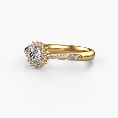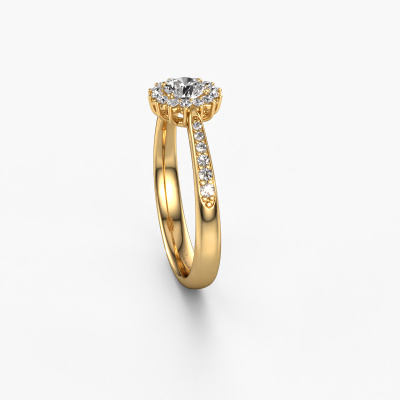 La bague de fiançailles présentée ci-dessus a été nommée Tilly RND 2. Nous appelons ce type de bague de fiançailles une bague entourage, dans laquelle de petites pierres précieuses sont serties autour de la pierre centrale dans un sertissage ouvert. Cette bague de fiançailles forgée en or 14 Carat a un diamant ronds de 0.25 crt en guise de pierre centrale qui est aussi entourée de petits diamants. Si vous regardez cette bague de fiançailles entourage forgée en or jaune, vous avez l'impression que les plus petites pierres précieuses, ainsi que le grand diamant, fusionnent en une seule grosse pierre scintillante, sous la forme d’une belle fleur. Cette bague de fiançailles peut aussi avoir un autre nom tel que bague fleur ou la bague rosette. Cependant, les diamants plus petits doivent tous être sertis de la même manière, afin que la lumière passant au travers du diamant ne soit pas interrompue et qu'une véritable unité soit créée. Voici donc le travail de nos maîtres orfèvres. Avec la plus grande précision, chaque diamant soigneusement sélectionné est serti à la main dans la bague de fiançailles. Toujours et encore, la bague de fiançailles est surveillée de près sous la lumière pour voir si l'effet spécial désiré est toujours visible. Nos orfèvres ne fabriqueront votre bague de fiançailles qu'une fois que vous l'aurez commandée. Nous ne faisons pas de stock. L'avantage de cela est que nous n'avons pas à inclure les frais de stockage dans nos prix, et nous pouvons donc vous offrir des bijoux à un prix très bas.Notre équipe ajoute quotidiennement de nouveaux modèles à notre collection en ligne. Nos designers et orfèvres travaillent ensemble pour créer le meilleur design. Nous nous efforçons d'offrir une collection diversifiée de bijoux. Peut-être avez-vous déjà en tête un bijou en particulier ? Un bijou que vous avez trouvé quelque part. Veuillez nous contacter pour une consultation gratuite. Nous vous ferons une offre, basée sur un rapport qualité / prix juste, qui vous déconcertera.Pour vous faciliter la tâche, vous pouvez facilement nous retourner tout bijou commandé dans les 30 jours suivant la livraison.
