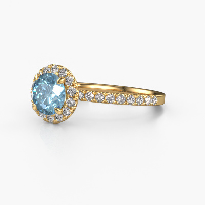 La bague de fiançailles mentionnée ci-dessus est nommée Miranda rnd. Nous appelons ce type de bague de fiançailles une bague Halo. La bague de fiançailles est forgée en or 14 Carat et comporte un diamant synthétique bleu ronds de la de 6.5 mm et autour duquel sont sertis de petits diamants synthétiques. La largeur de cette bague de fiançailles halo forgée en or jaune exclusives vient des plus petites pierres précieuses qui sont serties autour du large diamant synthétique bleu central. C’est également ce à partir de quoi cette belle bague de fiançailles tire son nom : halo signifie halo et c’est aussi l’effet que rendent les pierres précieuses plus petites. Cependant, ces pierres précieuses plus petites doivent toutes être serties de la même manière, afin que la lumière ne soit pas seulement introduite dans le diamant synthétique bleu et qu’un véritable halo de lumière soit créé. Et c'est ce que font nos maîtres orfèvres. Avec la plus grande précision, chaque diamant synthétique bleu soigneusement sélectionné est placé à la main dans la bague de fiançailles. Encore et encore, la bague de fiançailles est maintenue à la lumière pour voir si l'effet spécial est toujours visible. Le résultat est une bague de fiançailles unique, où le diamant synthétique bleu choisi devient littéralement le centre brillants. Vous pouvez imaginer que cette bague de fiançailles est vraiment une bague de fiançailles significative à offrir à votre amour de la vie ! Le jour où vous montrez qu’elle est votre centre brillants ! Qu'y a-t-il dorénavant de plus beau qu'une bague de fiançailles exclusives conçue par vous-même et fabriquée à la main par nous. Vous pouvez personnaliser chaque modèle avec les différents métaux précieux et pierres précieuses. De cette façon, vous pourrez créer une bague de fiançailles unique. Cette bague peut être mise en place de plusieurs façons. Bien sûr, vous pouvez toujours nous contacter et nous serons heureux de vous aider à composer votre bague de fiançailles exclusives Miranda rnd. Vous aimez le design, mais vous souhaitez tout de même quelque chose qui vous convienne plus, ou bien vous souhaitez une pierre précieuse dans les bijoux que vous ne pouvez pas choisir sur notre site, contactez-nous et nous vous aiderons.Avez-vous déjà des bague de fiançailles spécifiques en tête ? Une bague de fiançailles que vous avez vu quelque part. N'hésitez pas à nous faire part de vos souhaits et nous transformerons votre design en des bague de fiançailles uniques. Vous êtes en mesure de suivre l'évolution de la conception de vos bague de fiançailles car nous utilisons des dessins en 3D. Cela vous donnera un aperçu réaliste de votre design. Nous vous enverrons volontiers une offre sans engagement basée sur un rapport qualité / prix juste. Elle va vous étonner.Pour vous faciliter la tâche, vous pouvez facilement nous retourner tout bijou commandé dans les 30 jours suivant la livraison.