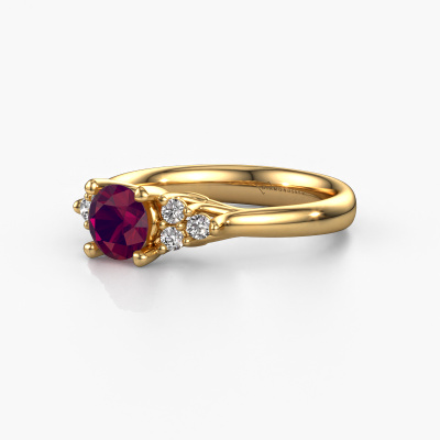 Le nom de cette bague de fiançailles est Monika RND. Elle est forgée en or 14 Carat et est sertie d'un rhodolite de 5.5 mm. Votre petit-amie aime-t-elle les accessoires au look unique ? Ou bien voudriez-vous lui montrer qu'elle ne mérite que le meilleur bijou ? Dans cette bague de fiançailles forgée en or jaune, le savoir-faire, l'amour et la passion se mêlent aux techniques d’orfèvres les plus récentes. Il faut un œil expérimenté, de la patience et une main habile pour concevoir parfaitement cette bague de fiançailles dans les moindres détails. Et c'est exactement le travail que nos orfèvres recherchent ! Le sertissage de ces rhodolites soigneusement sélectionnés donne à la bague de fiançailles ajour forgée en or jaune une allure supplémentaire. Le style peut être adapté au goût de votre petite amie grâce à un large choix de métaux précieux et de pierres précieuses. De cette manière, vous pouvez créer une bague de fiançailles unique pour la femmes la plus unique de votre vie ! Ce bijou est faite avec passion et amour par l'un de nos maîtres orfèvres.Vous avez peut-être remarqué que nos prix sont en moyenne inférieurs de 30% à ceux d'un autre bijoutier. Et ce alors que la qualité de nos bijoux est même plus élevée dans la plupart des cas ! En effet, nos orfèvres fabriquent votre bague de fiançailles directement dans notre propre atelier. Cela signifie que nous n'avons pas à inclure des frais de stocks coûteux et que nous pouvons travailler n'importe quel détail directement sur votre bague de fiançailles. Avez-vous déjà des bague de fiançailles spécifiques en tête ? Une bague de fiançailles que vous avez vu quelque part. N'hésitez pas à nous faire part de vos souhaits et nous transformerons votre design en des bague de fiançailles uniques. Vous êtes en mesure de suivre l'évolution de la conception de vos bague de fiançailles car nous utilisons des dessins en 3D. Cela vous donnera un aperçu réaliste de votre design. Nous vous enverrons volontiers une offre sans engagement basée sur un rapport qualité / prix juste. Elle va vous étonner.Pour vous faciliter la tâche, vous pouvez facilement nous retourner tout bijou commandé dans les 30 jours suivant la livraison.