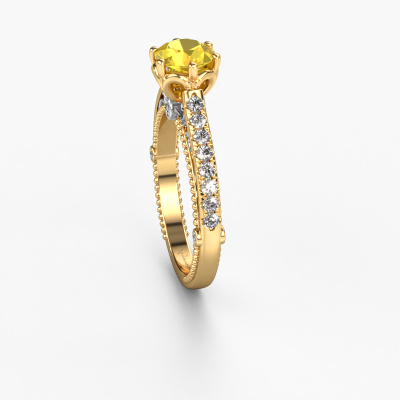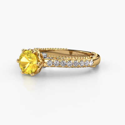 Cette bague de fiançailles porte le nom Venita. Cette bague de fiançailles forgée en or 14 Carat est sertie d’un saphir jaune. Cette bague de fiançailles unique est une large bague vintage forgée en or jaune qui laissera certainement briller l’amour de votre vie ! Et c'est exactement ce que nous avons comme objectif. De magnifiques saphirs jaunes ont été sertis sur cette bague de fiançailles vintage. Vous pouvez, bien entendu, utiliser chaque pierre précieuse que nous proposons sur notre site. La pierre précieuse sera sélectionnée avec soin, car nous pensons que seule la plus belle des pierres précieuses peut briller sur votre bague de fiançailles, qu’en dites-vous ? Notre orfèvre fabrique votre bague de fiançailles dans notre propre atelier et place le saphir jaune dans son anneau avec une précision extrême. Puis, elle est travaillée et polie jusqu'à ce que le résultat soit visible : la bague de fiançailles parfaite pour l'amour de votre vie ! Ce bijou est fabriquées spécialement pour vous par nos maîtres orfèvres dans notre propre atelier.Saviez-vous que nous offrons la garantie du meilleur prix pour votre bague de fiançailles? Cela est possible car tous nos bijoux sont fabriqués à la main dans notre propre atelier. Nous n'avons pas de frais de stocks qui sont coûteux, et nous fabriquons votre bague uniquement une fois que vous l'avez commandée. Grâce au fait que nous ayons toute la production du bijou en main, nous pouvons vous informer sur toutes les caractéristiques de cette bague de fiançailles. C’est précisément parce que l’achat d’une bague en ligne est une expérience excitante que nous comprenons qu’il est plus confortable pour vous de connaître toutes les caractéristiques de votre bague.Notre équipe ajoute quotidiennement de nouveaux modèles à notre collection en ligne. Nos designers et orfèvres travaillent ensemble pour créer le meilleur design. Nous nous efforçons d'offrir une collection diversifiée de bijoux. Peut-être avez-vous déjà en tête un bijou en particulier ? Un bijou que vous avez trouvé quelque part. Veuillez nous contacter pour une consultation gratuite. Nous vous ferons une offre, basée sur un rapport qualité / prix juste, qui vous déconcertera.Pour vous faciliter la tâche, vous pouvez facilement nous retourner tout bijou commandé dans les 30 jours suivant la livraison.