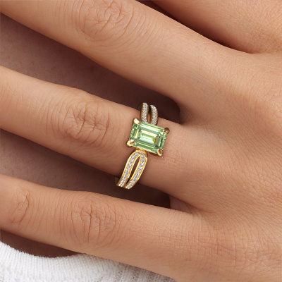 Le nom de cette bague de fiançailles est Antonia eme 2. Elle est forgée en or 14 Carat et est sertie d'un diamants synthétiques vert de 8x6 mm. Votre petit-amie aime-t-elle les accessoires au look unique ? Ou bien voudriez-vous lui montrer qu'elle ne mérite que le meilleur bijou ? Dans cette bague de fiançailles forgée en or jaune, le savoir-faire, l'amour et la passion se mêlent aux techniques d’orfèvres les plus récentes. Il faut un œil expérimenté, de la patience et une main habile pour concevoir parfaitement cette bague de fiançailles dans les moindres détails. Et c'est exactement le travail que nos orfèvres recherchent ! Le sertissage de ces diamants synthétiques vert soigneusement sélectionnés donne à la bague de fiançailles bandes séparées forgée en or jaune une allure supplémentaire. Le style peut être adapté au goût de votre petite amie grâce à un large choix de métaux précieux et de pierres précieuses. De cette manière, vous pouvez créer une bague de fiançailles unique pour la femmes la plus unique de votre vie ! Ce bijou est fabriquées avec passion et amour par l'un de nos maîtres orfèvres.Nos orfèvres ne fabriqueront votre bague de fiançailles qu'une fois que vous l'aurez commandée. Nous ne faisons pas de stock. L'avantage de cela est que nous n'avons pas à inclure les frais de stockage dans nos prix, et nous pouvons donc vous offrir des bijoux à un prix très bas. Avez-vous déjà des bague de fiançailles spécifiques en tête ? Une bague de fiançailles que vous avez vu quelque part. N'hésitez pas à nous faire part de vos souhaits et nous transformerons votre design en des bague de fiançailles uniques. Vous êtes en mesure de suivre l'évolution de la conception de vos bague de fiançailles car nous utilisons des dessins en 3D. Cela vous donnera un aperçu réaliste de votre design. Nous vous enverrons volontiers une offre sans engagement basée sur un rapport qualité / prix juste. Elle va vous étonner.Pour vous faciliter la tâche, vous pouvez facilement nous retourner tout bijou commandé dans les 30 jours suivant la livraison.