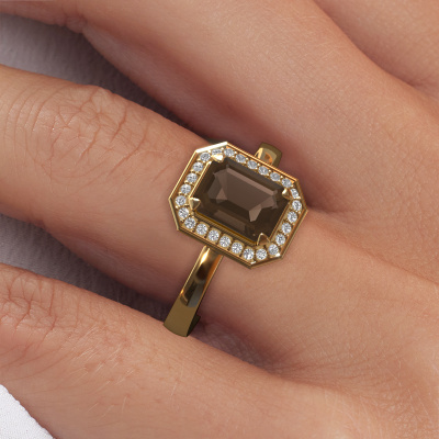 Le nom de cette bague de fiançailles est Dodie 1 eme. Elle est forgée en or 14 Carat et est sertie d'un quartz fumé de 8x6 mm. Votre petit-amie aime-t-elle les accessoires au look unique ? Ou bien voudriez-vous lui montrer qu'elle ne mérite que le meilleur bijou ? Dans cette bague de fiançailles forgée en or jaune, le savoir-faire, l'amour et la passion se mêlent aux techniques d’orfèvres les plus récentes. Il faut un œil expérimenté, de la patience et une main habile pour concevoir parfaitement cette bague de fiançailles dans les moindres détails. Et c'est exactement le travail que nos orfèvres recherchent ! Le sertissage de ces quartz fumé soigneusement sélectionnés donne à la bague de fiançailles spéciales forgée en or jaune une allure supplémentaire. Le style peut être adapté au goût de votre petite amie grâce à un large choix de métaux précieux et de pierres précieuses. De cette manière, vous pouvez créer une bague de fiançailles unique pour la femmes la plus unique de votre vie ! Ce bijou est fabriquées avec passion et amour par l'un de nos maîtres orfèvres.Nos orfèvres ne fabriqueront votre bague de fiançailles qu'une fois que vous l'aurez commandée. Nous ne faisons pas de stock. L'avantage de cela est que nous n'avons pas à inclure les frais de stockage dans nos prix, et nous pouvons donc vous offrir des bijoux à un prix très bas. Notre équipe ajoute quotidiennement de nouveaux modèles à notre collection en ligne. Nos designers et orfèvres travaillent ensemble pour créer le meilleur design. Nous nous efforçons d'offrir une collection diversifiée de bijoux. Peut-être avez-vous déjà en tête un bijou en particulier ? Un bijou que vous avez trouvé quelque part. Veuillez nous contacter pour une consultation gratuite. Nous vous ferons une offre, basée sur un rapport qualité / prix juste, qui vous déconcertera.Pour vous faciliter la tâche, vous pouvez facilement nous retourner tout bijou commandé dans les 30 jours suivant la livraison.