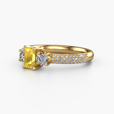 Le nom de cette bague de fiançailles est Marielle EME. Elle est forgée en or 14 Carat et est sertie d'un saphir jaune de 6x4 mm. Votre petit-amie aime-t-elle les accessoires au look unique ? Ou bien voudriez-vous lui montrer qu'elle ne mérite que le meilleur bijou ? Dans cette bague de fiançailles forgée en or jaune, le savoir-faire, l'amour et la passion se mêlent aux techniques d’orfèvres les plus récentes. Il faut un œil expérimenté, de la patience et une main habile pour concevoir parfaitement cette bague de fiançailles dans les moindres détails. Et c'est exactement le travail que nos orfèvres recherchent ! Le sertissage de ces saphirs jaunes soigneusement sélectionnés donne à la bague de fiançailles spéciales forgée en or jaune une allure supplémentaire. Le style peut être adapté au goût de votre petite amie grâce à un large choix de métaux précieux et de pierres précieuses. De cette manière, vous pouvez créer une bague de fiançailles unique pour la femmes la plus unique de votre vie ! Ce bijou est faite pour briller sur votre doigt, chaque bijou est fabriqué à la main par nos orfèvres.Puisque nous concevons et livrons nos propres bijoux, nous sommes en mesure de vous proposer une bague de fiançailles à un prix que vous ne pourrez pas trouver ailleurs. Une alliance est fabriquée sur commande, ce qui permet d'éviter les excédents de matériel et nous permet de vous proposer une superbe offre de prix. Nous comprenons qu'acheter votre bague de fiançailles en ligne soit un risque, mais nous vous assistons volontiers dans le processus de conception, en tenant compte de votre budget. Notre équipe ajoute quotidiennement de nouveaux modèles à notre collection en ligne. Nos designers et orfèvres travaillent ensemble pour créer le meilleur design. Nous nous efforçons d'offrir une collection diversifiée de bijoux. Peut-être avez-vous déjà en tête un bijou en particulier ? Un bijou que vous avez trouvé quelque part. Veuillez nous contacter pour une consultation gratuite. Nous vous ferons une offre, basée sur un rapport qualité / prix juste, qui vous déconcertera.Pour vous faciliter la tâche, vous pouvez facilement nous retourner tout bijou commandé dans les 30 jours suivant la livraison.
