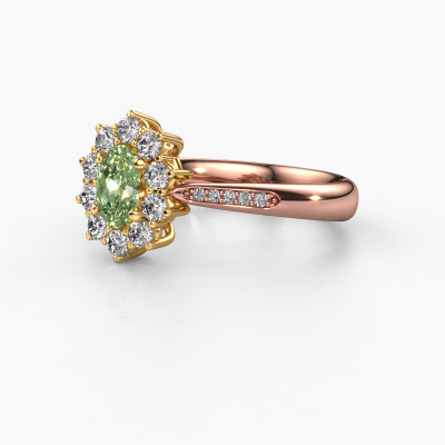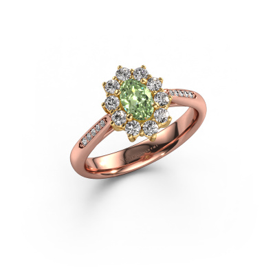 La bague de fiançailles présentée ci-dessus a été nommée Leesa 2. Nous appelons ce type de bague de fiançailles une bague entourage, dans laquelle de petites pierres précieuses sont serties autour de la pierre centrale dans un sertissage ouvert. Cette bague de fiançailles forgée en or 14 Carat a un diamants synthétiques vert ovale de 6x4 mm en guise de pierre centrale qui est aussi entourée de petits diamants. La particularité de cette bague de fiançailles classiques forgée en or rose est sa forme : les petites pierres précieuses et le diamants synthétiques vert forment une belle fleur qui semble se fondre en une large pierre précieuse étincelante. Cette bague de fiançailles est aussi appelée la bague de fiançailles fleur ou rosette. Nos maîtres orfèvres veillent à ce que les plus petits diamants soient tous sertis de la même manière, afin que la lumière passant au travers du diamants synthétiques vert ne soit pas interrompue et qu'une belle unité soit créée. Avec un œil expérimenté et une main habile, chaque diamants synthétiques vert soigneusement sélectionné est serti dans la bague de fiançailles. Toujours et encore, la bague de fiançailles est examinée sous la lumière pour voir si l'effet spécial désiré est encore visible. Le résultat est une bague de fiançailles unique, où le diamants synthétiques vert choisi devient littéralement le centre brillants. Quelle bague de fiançailles belle et significative à offrir au centre qui brille dans votre vie ! Vous avez peut-être remarqué que nos prix sont en moyenne inférieurs de 30% à ceux d'un autre bijoutier. Et ce alors que la qualité de nos bijoux est même plus élevée dans la plupart des cas ! En effet, nos orfèvres fabriquent votre bague de fiançailles directement dans notre propre atelier. Cela signifie que nous n'avons pas à inclure des frais de stocks coûteux et que nous pouvons travailler n'importe quel détail directement sur votre bague de fiançailles.Notre équipe de designers talentueux et passionnés ajoute chaque jour de nouveaux modèles bague de fiançailles à notre collection en ligne. Notre objectif est de pouvoir vous offrir une grande variété de bijoux. N'hésitez pas à demander un devis si vous avez des souhaits spécifiques pour votre bague de fiançailles. Nous garantissons de vous faire une offre que vous ne pourrez pas refuser.Pour vous faciliter la tâche, vous pouvez facilement nous retourner tout bijou commandé dans les 30 jours suivant la livraison.