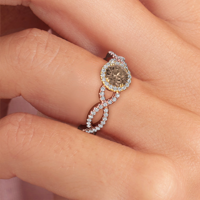 La bague de fiançailles mentionnée ci-dessus a été nommée Dionne rnd. Ce type de bague de fiançailles est appelé une bague de fiançailles solitaire pavé car elle ne comporte qu’une seule pierre centrale et les tiges de la bague de fiançailles sont également pleins. La bague de fiançailles est faite dans une combinaison d'or 14 Carat et d’or jaune et a un diamant brun ronds d’une de 0.50 crt, et des diamants sont sertis sur les épaules de l’anneau. Chaque bijou est fabriquées spécialement pour vous par nos maîtres orfèvres dans notre propre atelier. Cette bague de fiançailles solitaire pavé forgée en or rose classiques a un beau diamants bruns ronds comme pierre centrale, avec plus de diamants bruns sertis dans la bague pour accentuer encore plus la présence de la pierre centrale. Le sertissage à griffes autour du diamant brun étant ouvert, le diamant brun capte la lumière de tous les côtés et brille de manière optimale. Ci-dessus, vous pouvez voir comment notre orfèvre travaille la bague de fiançailles avec une extrême précision dans les moindres détails, de telle sorte que le diamant brun élevé puisse attirer tous les regards. Quelle belle bague de fiançailles à offrir lors de votre demande en mariage à l'amour de votre vie, à votre centre rayonnant ! Puisque nous concevons et livrons nos propres bijoux, nous sommes en mesure de vous proposer une bague de fiançailles à un prix que vous ne pourrez pas trouver ailleurs. Une alliance est fabriquée sur commande, ce qui permet d'éviter les excédents de matériel et nous permet de vous proposer une superbe offre de prix. Nous comprenons qu'acheter votre bague de fiançailles en ligne soit un risque, mais nous vous assistons volontiers dans le processus de conception, en tenant compte de votre budget.Avez-vous déjà des bague de fiançailles spécifiques en tête ? Une bague de fiançailles que vous avez vu quelque part. N'hésitez pas à nous faire part de vos souhaits et nous transformerons votre design en des bague de fiançailles uniques. Vous êtes en mesure de suivre l'évolution de la conception de vos bague de fiançailles car nous utilisons des dessins en 3D. Cela vous donnera un aperçu réaliste de votre design. Nous vous enverrons volontiers une offre sans engagement basée sur un rapport qualité / prix juste. Elle va vous étonner.Pour vous faciliter la tâche, vous pouvez facilement nous retourner tout bijou commandé dans les 30 jours suivant la livraison.