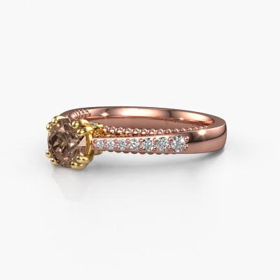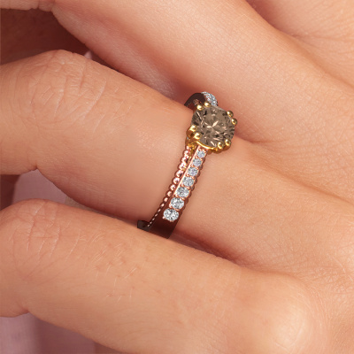 La bague de fiançailles mentionnée ci-dessus a été nommée Rozella. Ce type de bague de fiançailles est appelé une bague de fiançailles solitaire pavé car elle ne comporte qu’une seule pierre centrale et les tiges de la bague de fiançailles sont également pleins. La bague de fiançailles est faite dans une combinaison d'or 14 Carat et d’or jaune et a un diamant brun ronds d’une de 0.65 crt, et des diamants synthétiques sont sertis sur les épaules de l’anneau. Chaque bijou est fabriquées avec passion et amour par l'un de nos maîtres orfèvres. Cette bague de fiançailles solitaire pavé forgée en or rose uniques a un beau diamants bruns ronds comme pierre centrale, avec plus de diamants bruns sertis dans la bague pour accentuer encore plus la présence de la pierre centrale. Le sertissage à griffes autour du diamant brun étant ouvert, le diamant brun capte la lumière de tous les côtés et brille de manière optimale. Ci-dessus, vous pouvez voir comment notre orfèvre travaille la bague de fiançailles avec une extrême précision dans les moindres détails, de telle sorte que le diamant brun élevé puisse attirer tous les regards. Quelle belle bague de fiançailles à offrir lors de votre demande en mariage à l'amour de votre vie, à votre centre rayonnant ! Nos orfèvres ne fabriqueront votre bague de fiançailles qu'une fois que vous l'aurez commandée. Nous ne faisons pas de stock. L'avantage de cela est que nous n'avons pas à inclure les frais de stockage dans nos prix, et nous pouvons donc vous offrir des bijoux à un prix très bas.Notre équipe de designers talentueux et passionnés ajoute chaque jour de nouveaux modèles bague de fiançailles à notre collection en ligne. Notre objectif est de pouvoir vous offrir une grande variété de bijoux. N'hésitez pas à demander un devis si vous avez des souhaits spécifiques pour votre bague de fiançailles. Nous garantissons de vous faire une offre que vous ne pourrez pas refuser.Pour vous faciliter la tâche, vous pouvez facilement nous retourner tout bijou commandé dans les 30 jours suivant la livraison.