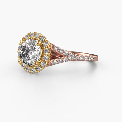 La bague de fiançailles mentionnée ci-dessus a été nommée Kimber RND. Ce type de bague de fiançailles est appelé une bague de fiançailles solitaire pavé car elle ne comporte qu’une seule pierre centrale et les tiges de la bague de fiançailles sont également pleins. La bague de fiançailles est faite dans une combinaison d'or 14 Carat et d’or jaune et a un diamant custom ronds d’une de 7 mm, et des diamants synthétiques sont sertis sur les épaules de l’anneau. Chaque bijou est faite pour briller sur votre doigt, chaque bijou est fabriqué à la main par nos orfèvres. Cette bague de fiançailles solitaire pavé forgée en or rose classiques a un beau diamant custom ronds comme pierre centrale, avec plus de diamant custom sertis dans la bague pour accentuer encore plus la présence de la pierre centrale. Le sertissage à griffes autour du diamant custom étant ouvert, le diamant custom capte la lumière de tous les côtés et brille de manière optimale. Ci-dessus, vous pouvez voir comment notre orfèvre travaille la bague de fiançailles avec une extrême précision dans les moindres détails, de telle sorte que le diamant custom élevé puisse attirer tous les regards. Quelle belle bague de fiançailles à offrir lors de votre demande en mariage à l'amour de votre vie, à votre centre rayonnant ! Saviez-vous que nous offrons la garantie du meilleur prix pour votre bague de fiançailles? Cela est possible car tous nos bijoux sont fabriqués à la main dans notre propre atelier. Nous n'avons pas de frais de stocks qui sont coûteux, et nous fabriquons votre bague uniquement une fois que vous l'avez commandée. Grâce au fait que nous ayons toute la production du bijou en main, nous pouvons vous informer sur toutes les caractéristiques de cette bague de fiançailles. C’est précisément parce que l’achat d’une bague en ligne est une expérience excitante que nous comprenons qu’il est plus confortable pour vous de connaître toutes les caractéristiques de votre bague.Notre équipe ajoute quotidiennement de nouveaux modèles à notre collection en ligne. Nos designers et orfèvres travaillent ensemble pour créer le meilleur design. Nous nous efforçons d'offrir une collection diversifiée de bijoux. Peut-être avez-vous déjà en tête un bijou en particulier ? Un bijou que vous avez trouvé quelque part. Veuillez nous contacter pour une consultation gratuite. Nous vous ferons une offre, basée sur un rapport qualité / prix juste, qui vous déconcertera.Pour vous faciliter la tâche, vous pouvez facilement nous retourner tout bijou commandé dans les 30 jours suivant la livraison.