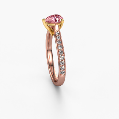 La bague de fiançailles mentionnée ci-dessus a été nommée Mignon per 2. Ce type de bague de fiançailles est appelé une bague de fiançailles solitaire pavé car elle ne comporte qu’une seule pierre centrale et les tiges de la bague de fiançailles sont également pleins. La bague de fiançailles est faite dans une combinaison d'or 14 Carat et d’or jaune et a un diamant synthétique roze poire d’une de 6.5x4.5 mm, et des diamants sont sertis sur les épaules de l’anneau. Chaque bijou est fabriquée spécialement pour vous par nos maîtres orfèvres dans notre propre atelier. Cette bague de fiançailles solitaire pavé forgée en or rose tendances a un beau diamant synthétique roze poire comme pierre centrale, avec plus de diamant synthétique roze sertis dans la bague pour accentuer encore plus la présence de la pierre centrale. Le sertissage à griffes autour du diamant synthétique roze étant ouvert, le diamant synthétique roze capte la lumière de tous les côtés et brille de manière optimale. Ci-dessus, vous pouvez voir comment notre orfèvre travaille la bague de fiançailles avec une extrême précision dans les moindres détails, de telle sorte que le diamant synthétique roze élevé puisse attirer tous les regards. Quelle belle bague de fiançailles à offrir lors de votre demande en mariage à l'amour de votre vie, à votre centre rayonnant ! Vous avez peut-être remarqué que nos prix sont en moyenne inférieurs de 30% à ceux d'un autre bijoutier. Et ce alors que la qualité de nos bijoux est même plus élevée dans la plupart des cas ! En effet, nos orfèvres fabriquent votre bague de fiançailles directement dans notre propre atelier. Cela signifie que nous n'avons pas à inclure des frais de stocks coûteux et que nous pouvons travailler n'importe quel détail directement sur votre bague de fiançailles.Notre équipe ajoute quotidiennement de nouveaux modèles à notre collection en ligne. Nos designers et orfèvres travaillent ensemble pour créer le meilleur design. Nous nous efforçons d'offrir une collection diversifiée de bijoux. Peut-être avez-vous déjà en tête un bijou en particulier ? Un bijou que vous avez trouvé quelque part. Veuillez nous contacter pour une consultation gratuite. Nous vous ferons une offre, basée sur un rapport qualité / prix juste, qui vous déconcertera.Pour vous faciliter la tâche, vous pouvez facilement nous retourner tout bijou commandé dans les 30 jours suivant la livraison.