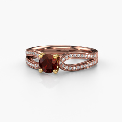 La bague de fiançailles mentionnée ci-dessus a été nommée Antonia rnd 2. Ce type de bague de fiançailles est appelé une bague de fiançailles solitaire pavé car elle ne comporte qu’une seule pierre centrale et les tiges de la bague de fiançailles sont également pleins. La bague de fiançailles est faite dans une combinaison d'or 14 Carat et d’or jaune et a un grenat ronds d’une de 5 mm, et des diamants sont sertis sur les épaules de l’anneau. Chaque bijou est spécialement conçues pour vous, avec une attention particulière portée aux détails et au design. Cette bague de fiançailles solitaire pavé forgée en or rose traditionnelles a un beau grenats ronds comme pierre centrale, avec plus de grenats sertis dans la bague pour accentuer encore plus la présence de la pierre centrale. Le sertissage à griffes autour du grenat étant ouvert, le grenat capte la lumière de tous les côtés et brille de manière optimale. Ci-dessus, vous pouvez voir comment notre orfèvre travaille la bague de fiançailles avec une extrême précision dans les moindres détails, de telle sorte que le grenat élevé puisse attirer tous les regards. Quelle belle bague de fiançailles à offrir lors de votre demande en mariage à l'amour de votre vie, à votre centre rayonnant ! Nos orfèvres ne fabriqueront votre bague de fiançailles qu'une fois que vous l'aurez commandée. Nous ne faisons pas de stock. L'avantage de cela est que nous n'avons pas à inclure les frais de stockage dans nos prix, et nous pouvons donc vous offrir des bijoux à un prix très bas.Avez-vous déjà des bague de fiançailles spécifiques en tête ? Une bague de fiançailles que vous avez vu quelque part. N'hésitez pas à nous faire part de vos souhaits et nous transformerons votre design en des bague de fiançailles uniques. Vous êtes en mesure de suivre l'évolution de la conception de vos bague de fiançailles car nous utilisons des dessins en 3D. Cela vous donnera un aperçu réaliste de votre design. Nous vous enverrons volontiers une offre sans engagement basée sur un rapport qualité / prix juste. Elle va vous étonner.Pour vous faciliter la tâche, vous pouvez facilement nous retourner tout bijou commandé dans les 30 jours suivant la livraison.