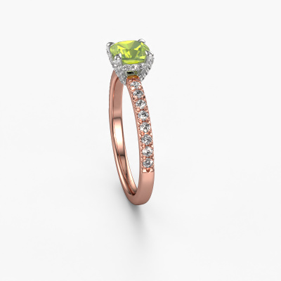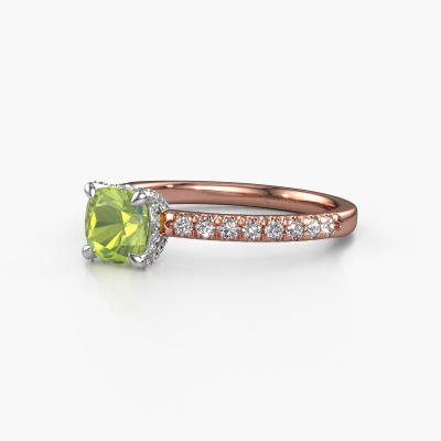La bague de fiançailles mentionnée ci-dessus a été nommée Saskia 1 cus. Ce type de bague de fiançailles est appelé une bague de fiançailles solitaire pavé car elle ne comporte qu’une seule pierre centrale et les tiges de la bague de fiançailles sont également pleins. La bague de fiançailles est faite dans une combinaison d'or 14 Carat et d’or blanc et a un péridot coussin d’une de 5.5 mm, et des diamants sont sertis sur les épaules de l’anneau. Chaque bijou est fabriquée par une équipe d'orfèvres et de designers motivés. Cela permettra à cette pièce unique d'attirer tous les regards. Cette bague de fiançailles solitaire pavé forgée en or rose uniques a un beau péridots coussin comme pierre centrale, avec plus de péridots sertis dans la bague pour accentuer encore plus la présence de la pierre centrale. Le sertissage à griffes autour du péridot étant ouvert, le péridot capte la lumière de tous les côtés et brille de manière optimale. Ci-dessus, vous pouvez voir comment notre orfèvre travaille la bague de fiançailles avec une extrême précision dans les moindres détails, de telle sorte que le péridot élevé puisse attirer tous les regards. Quelle belle bague de fiançailles à offrir lors de votre demande en mariage à l'amour de votre vie, à votre centre rayonnant ! En combinant les dernières techniques modernes, associées à une fabrication ancienne, nous sommes en mesure de fabriquer nos bagues de fiançailles dans notre propre studio. Chaque bijou est fabriqué sur commande. Ceci est avantageux car nous sommes en mesure de vous proposer un prix que vous ne trouverez nulle part ailleurs.Notre équipe ajoute quotidiennement de nouveaux modèles à notre collection en ligne. Nos designers et orfèvres travaillent ensemble pour créer le meilleur design. Nous nous efforçons d'offrir une collection diversifiée de bijoux. Peut-être avez-vous déjà en tête un bijou en particulier ? Un bijou que vous avez trouvé quelque part. Veuillez nous contacter pour une consultation gratuite. Nous vous ferons une offre, basée sur un rapport qualité / prix juste, qui vous déconcertera.Pour vous faciliter la tâche, vous pouvez facilement nous retourner tout bijou commandé dans les 30 jours suivant la livraison.