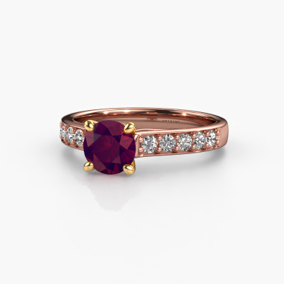 La bague de fiançailles mentionnée ci-dessus a été nommée Valorie RND 2. Ce type de bague de fiançailles est appelé une bague de fiançailles solitaire pavé car elle ne comporte qu’une seule pierre centrale et les tiges de la bague de fiançailles sont également pleins. La bague de fiançailles est faite dans une combinaison d'or 14 Carat et d’or jaune et a un rhodolite ronds d’une de 6.5 mm, et des diamants synthétiques sont sertis sur les épaules de l’anneau. Chaque bijou est faite spécialement pour vous, avec une attention particulière portée aux détails et au design. Cette bague de fiançailles solitaire pavé forgée en or rose modernes a un beau rhodolites ronds comme pierre centrale, avec plus de rhodolites sertis dans la bague pour accentuer encore plus la présence de la pierre centrale. Le sertissage à griffes autour du rhodolite étant ouvert, le rhodolite capte la lumière de tous les côtés et brille de manière optimale. Ci-dessus, vous pouvez voir comment notre orfèvre travaille la bague de fiançailles avec une extrême précision dans les moindres détails, de telle sorte que le rhodolite élevé puisse attirer tous les regards. Quelle belle bague de fiançailles à offrir lors de votre demande en mariage à l'amour de votre vie, à votre centre rayonnant ! Qu'y a-t-il dorénavant de plus beau qu'une bague de fiançailles modernes conçue par vous-même et fabriquée à la main par nous. Vous pouvez personnaliser chaque modèle avec les différents métaux précieux et pierres précieuses. De cette façon, vous pourrez créer une bague de fiançailles unique. Cette bague peut être mise en place de plusieurs façons. Bien sûr, vous pouvez toujours nous contacter et nous serons heureux de vous aider à composer votre bague de fiançailles modernes Valorie RND 2. Vous aimez le design, mais vous souhaitez tout de même quelque chose qui vous convienne plus, ou bien vous souhaitez une pierre précieuse dans les bijoux que vous ne pouvez pas choisir sur notre site, contactez-nous et nous vous aiderons.Notre équipe de designers talentueux et passionnés ajoute chaque jour de nouveaux modèles bague de fiançailles à notre collection en ligne. Notre objectif est de pouvoir vous offrir une grande variété de bijoux. N'hésitez pas à demander un devis si vous avez des souhaits spécifiques pour votre bague de fiançailles. Nous garantissons de vous faire une offre que vous ne pourrez pas refuser.Pour vous faciliter la tâche, vous pouvez facilement nous retourner tout bijou commandé dans les 30 jours suivant la livraison.