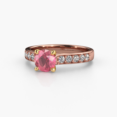 La bague de fiançailles mentionnée ci-dessus a été nommée Valorie RND 2. Ce type de bague de fiançailles est appelé une bague de fiançailles solitaire pavé car elle ne comporte qu’une seule pierre centrale et les tiges de la bague de fiançailles sont également pleins. La bague de fiançailles est faite dans une combinaison d'or 14 Carat et d’or jaune et a un rose tourmaline ronds d’une de 6.5 mm, et des diamants synthétiques sont sertis sur les épaules de l’anneau. Chaque bijou est faite spécialement pour vous, avec une attention particulière portée aux détails et au design. Cette bague de fiançailles solitaire pavé forgée en or rose modernes a un beau rose tourmaline ronds comme pierre centrale, avec plus de rose tourmaline sertis dans la bague pour accentuer encore plus la présence de la pierre centrale. Le sertissage à griffes autour du rose tourmaline étant ouvert, le rose tourmaline capte la lumière de tous les côtés et brille de manière optimale. Ci-dessus, vous pouvez voir comment notre orfèvre travaille la bague de fiançailles avec une extrême précision dans les moindres détails, de telle sorte que le rose tourmaline élevé puisse attirer tous les regards. Quelle belle bague de fiançailles à offrir lors de votre demande en mariage à l'amour de votre vie, à votre centre rayonnant ! Qu'y a-t-il dorénavant de plus beau qu'une bague de fiançailles modernes conçue par vous-même et fabriquée à la main par nous. Vous pouvez personnaliser chaque modèle avec les différents métaux précieux et pierres précieuses. De cette façon, vous pourrez créer une bague de fiançailles unique. Cette bague peut être mise en place de plusieurs façons. Bien sûr, vous pouvez toujours nous contacter et nous serons heureux de vous aider à composer votre bague de fiançailles modernes Valorie RND 2. Vous aimez le design, mais vous souhaitez tout de même quelque chose qui vous convienne plus, ou bien vous souhaitez une pierre précieuse dans les bijoux que vous ne pouvez pas choisir sur notre site, contactez-nous et nous vous aiderons.Notre équipe de designers talentueux et passionnés ajoute chaque jour de nouveaux modèles bague de fiançailles à notre collection en ligne. Notre objectif est de pouvoir vous offrir une grande variété de bijoux. N'hésitez pas à demander un devis si vous avez des souhaits spécifiques pour votre bague de fiançailles. Nous garantissons de vous faire une offre que vous ne pourrez pas refuser.Pour vous faciliter la tâche, vous pouvez facilement nous retourner tout bijou commandé dans les 30 jours suivant la livraison.