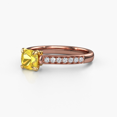 La bague de fiançailles mentionnée ci-dessus a été nommée Valorie cus 2. Ce type de bague de fiançailles est appelé une bague de fiançailles solitaire pavé car elle ne comporte qu’une seule pierre centrale et les tiges de la bague de fiançailles sont également pleins. La bague de fiançailles est faite dans une combinaison d'or 14 Carat et d’or jaune et a un saphir jaune coussin d’une de 5.5 mm, et des diamants sont sertis sur les épaules de l’anneau. Chaque bijou est fabriquées spécialement pour vous par nos maîtres orfèvres dans notre propre atelier. Cette bague de fiançailles solitaire pavé forgée en or rose traditionnelles a un beau saphirs jaunes coussin comme pierre centrale, avec plus de saphirs jaunes sertis dans la bague pour accentuer encore plus la présence de la pierre centrale. Le sertissage à griffes autour du saphir jaune étant ouvert, le saphir jaune capte la lumière de tous les côtés et brille de manière optimale. Ci-dessus, vous pouvez voir comment notre orfèvre travaille la bague de fiançailles avec une extrême précision dans les moindres détails, de telle sorte que le saphir jaune élevé puisse attirer tous les regards. Quelle belle bague de fiançailles à offrir lors de votre demande en mariage à l'amour de votre vie, à votre centre rayonnant ! En combinant les dernières techniques modernes, associées à une fabrication ancienne, nous sommes en mesure de fabriquer nos bagues de fiançailles dans notre propre studio. Chaque bijou est fabriqué sur commande. Ceci est avantageux car nous sommes en mesure de vous proposer un prix que vous ne trouverez nulle part ailleurs.Notre équipe de designers talentueux et passionnés ajoute chaque jour de nouveaux modèles bague de fiançailles à notre collection en ligne. Notre objectif est de pouvoir vous offrir une grande variété de bijoux. N'hésitez pas à demander un devis si vous avez des souhaits spécifiques pour votre bague de fiançailles. Nous garantissons de vous faire une offre que vous ne pourrez pas refuser.Pour vous faciliter la tâche, vous pouvez facilement nous retourner tout bijou commandé dans les 30 jours suivant la livraison.
