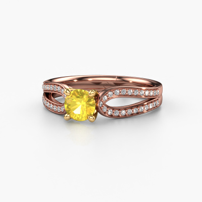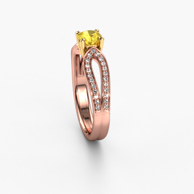 La bague de fiançailles mentionnée ci-dessus a été nommée Antonia rnd 2. Ce type de bague de fiançailles est appelé une bague de fiançailles solitaire pavé car elle ne comporte qu’une seule pierre centrale et les tiges de la bague de fiançailles sont également pleins. La bague de fiançailles est faite dans une combinaison d'or 14 Carat et d’or jaune et a un saphir jaune ronds d’une de 5 mm, et des diamants sont sertis sur les épaules de l’anneau. Chaque bijou est spécialement conçues pour vous, avec une attention particulière portée aux détails et au design. Cette bague de fiançailles solitaire pavé forgée en or rose traditionnelles a un beau saphirs jaunes ronds comme pierre centrale, avec plus de saphirs jaunes sertis dans la bague pour accentuer encore plus la présence de la pierre centrale. Le sertissage à griffes autour du saphir jaune étant ouvert, le saphir jaune capte la lumière de tous les côtés et brille de manière optimale. Ci-dessus, vous pouvez voir comment notre orfèvre travaille la bague de fiançailles avec une extrême précision dans les moindres détails, de telle sorte que le saphir jaune élevé puisse attirer tous les regards. Quelle belle bague de fiançailles à offrir lors de votre demande en mariage à l'amour de votre vie, à votre centre rayonnant ! Nos orfèvres ne fabriqueront votre bague de fiançailles qu'une fois que vous l'aurez commandée. Nous ne faisons pas de stock. L'avantage de cela est que nous n'avons pas à inclure les frais de stockage dans nos prix, et nous pouvons donc vous offrir des bijoux à un prix très bas.Avez-vous déjà des bague de fiançailles spécifiques en tête ? Une bague de fiançailles que vous avez vu quelque part. N'hésitez pas à nous faire part de vos souhaits et nous transformerons votre design en des bague de fiançailles uniques. Vous êtes en mesure de suivre l'évolution de la conception de vos bague de fiançailles car nous utilisons des dessins en 3D. Cela vous donnera un aperçu réaliste de votre design. Nous vous enverrons volontiers une offre sans engagement basée sur un rapport qualité / prix juste. Elle va vous étonner.Pour vous faciliter la tâche, vous pouvez facilement nous retourner tout bijou commandé dans les 30 jours suivant la livraison.