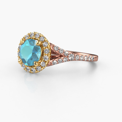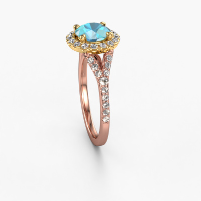 La bague de fiançailles mentionnée ci-dessus a été nommée Kimber RND. Ce type de bague de fiançailles est appelé une bague de fiançailles solitaire pavé car elle ne comporte qu’une seule pierre centrale et les tiges de la bague de fiançailles sont également pleins. La bague de fiançailles est faite dans une combinaison d'or 14 Carat et d’or jaune et a un topaze bleue ronds d’une de 7 mm, et des diamants synthétiques sont sertis sur les épaules de l’anneau. Chaque bijou est faite pour briller sur votre doigt, chaque bijou est fabriqué à la main par nos orfèvres. Cette bague de fiançailles solitaire pavé forgée en or rose classiques a un beau topaze bleue ronds comme pierre centrale, avec plus de topaze bleue sertis dans la bague pour accentuer encore plus la présence de la pierre centrale. Le sertissage à griffes autour du topaze bleue étant ouvert, le topaze bleue capte la lumière de tous les côtés et brille de manière optimale. Ci-dessus, vous pouvez voir comment notre orfèvre travaille la bague de fiançailles avec une extrême précision dans les moindres détails, de telle sorte que le topaze bleue élevé puisse attirer tous les regards. Quelle belle bague de fiançailles à offrir lors de votre demande en mariage à l'amour de votre vie, à votre centre rayonnant ! Saviez-vous que nous offrons la garantie du meilleur prix pour votre bague de fiançailles? Cela est possible car tous nos bijoux sont fabriqués à la main dans notre propre atelier. Nous n'avons pas de frais de stocks qui sont coûteux, et nous fabriquons votre bague uniquement une fois que vous l'avez commandée. Grâce au fait que nous ayons toute la production du bijou en main, nous pouvons vous informer sur toutes les caractéristiques de cette bague de fiançailles. C’est précisément parce que l’achat d’une bague en ligne est une expérience excitante que nous comprenons qu’il est plus confortable pour vous de connaître toutes les caractéristiques de votre bague.Notre équipe ajoute quotidiennement de nouveaux modèles à notre collection en ligne. Nos designers et orfèvres travaillent ensemble pour créer le meilleur design. Nous nous efforçons d'offrir une collection diversifiée de bijoux. Peut-être avez-vous déjà en tête un bijou en particulier ? Un bijou que vous avez trouvé quelque part. Veuillez nous contacter pour une consultation gratuite. Nous vous ferons une offre, basée sur un rapport qualité / prix juste, qui vous déconcertera.Pour vous faciliter la tâche, vous pouvez facilement nous retourner tout bijou commandé dans les 30 jours suivant la livraison.