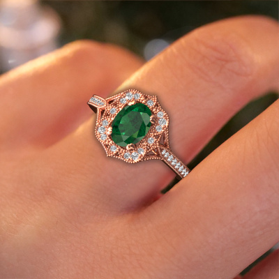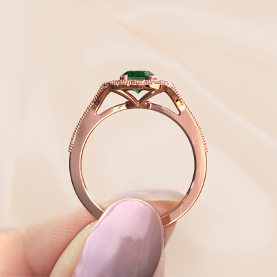 Cette bague de fiançailles porte le nom Loni. Cette bague de fiançailles forgée en or 14 Carat est sertie d’un emeraude de 7,5x5,5 mm. Cette bague de fiançailles forgée en or rose en filigrane est un chef-d’œuvre en soi. Un magnifique design de fils sophistiqués qui forment un ensemble unique. Et simultanément, un beau défi pour nos orfèvres passionnés ! Avec un grand dévouement, de la patience et une grande précision, ils forgent cette bague de fiançailles spécialement pour votre bien-aimée. Tout est fabriqué à la main, de telle sorte que chaque fil puisse être parfaitement travaillé dans les moindres détails. Un long processus de forgeage, de travail et de polissage, jusqu'à ce que le maître forgeron, gardant la bague de fiançailles à la lumière, soit satisfait du résultat... Une bague de fiançailles parfaite dont il est vraiment fier. C'est la raison pour laquelle cette bague de fiançailles en filigrane vintage est aussi une large bague de fiançailles à offrir à l'amour de votre vie ! Vous allez bientôt faire votre demande à cette personne, et cette bague de fiançailles unique n’est faite que pour cette seule personne ! Merveilleux, non ? Ce bijou est faite avec passion et amour par l'un de nos maîtres orfèvres.Puisque nous concevons et livrons nos propres bijoux, nous sommes en mesure de vous proposer une bague de fiançailles à un prix que vous ne pourrez pas trouver ailleurs. Une alliance est fabriquée sur commande, ce qui permet d'éviter les excédents de matériel et nous permet de vous proposer une superbe offre de prix. Nous comprenons qu'acheter votre bague de fiançailles en ligne soit un risque, mais nous vous assistons volontiers dans le processus de conception, en tenant compte de votre budget.Notre équipe ajoute quotidiennement de nouveaux modèles à notre collection en ligne. Nos designers et orfèvres travaillent ensemble pour créer le meilleur design. Nous nous efforçons d'offrir une collection diversifiée de bijoux. Peut-être avez-vous déjà en tête un bijou en particulier ? Un bijou que vous avez trouvé quelque part. Veuillez nous contacter pour une consultation gratuite. Nous vous ferons une offre, basée sur un rapport qualité / prix juste, qui vous déconcertera.Pour vous faciliter la tâche, vous pouvez facilement nous retourner tout bijou commandé dans les 30 jours suivant la livraison.