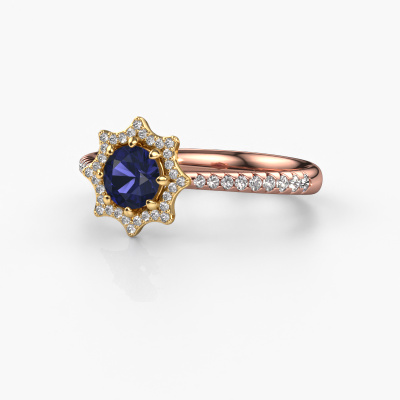 Cette bague de fiançailles porte le nom Zena. Cette bague de fiançailles forgée en or 14 Carat est sertie d’un saphir. Cette bague de fiançailles unique est une large bague vintage forgée en or rose qui laissera certainement briller l’amour