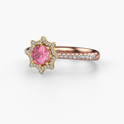 Cette bague de fiançailles porte le nom Zena. Cette bague de fiançailles forgée en or 14 Carat est sertie d’un saphir rose. Cette bague de fiançailles unique est une large bague vintage forgée en or rose qui laissera certainement briller