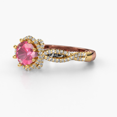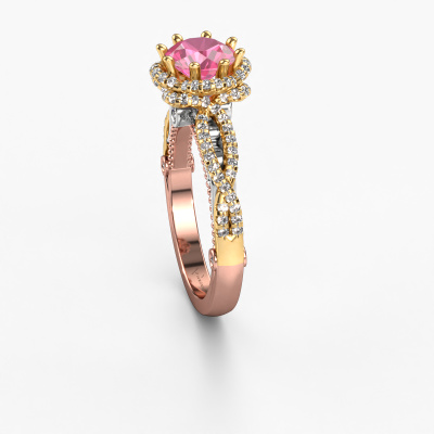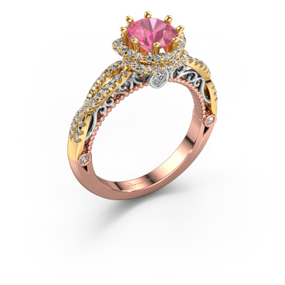 Cette bague de fiançailles porte le nom Lysanne. Cette bague de fiançailles forgée en or 14 Carat est sertie d’un saphir rose de 6.5 mm. Cette bague de fiançailles forgée en or rose en filigrane est un chef-d’œuvre en soi. Un magnifique design de fils sophistiqués qui forment un ensemble unique. Et simultanément, un beau défi pour nos orfèvres passionnés ! Avec un grand dévouement, de la patience et une grande précision, ils forgent cette bague de fiançailles spécialement pour votre bien-aimée. Tout est fabriqué à la main, de telle sorte que chaque fil puisse être parfaitement travaillé dans les moindres détails. Un long processus de forgeage, de travail et de polissage, jusqu'à ce que le maître forgeron, gardant la bague de fiançailles à la lumière, soit satisfait du résultat... Une bague de fiançailles parfaite dont il est vraiment fier. C'est la raison pour laquelle cette bague de fiançailles en filigrane vintage est aussi une large bague de fiançailles à offrir à l'amour de votre vie ! Vous allez bientôt faire votre demande à cette personne, et cette bague de fiançailles unique n’est faite que pour cette seule personne ! Merveilleux, non ? Ce bijou est fabriquée par une équipe d'orfèvres et de designers motivés. Cela permettra à cette pièce unique d'attirer tous les regards.Nos orfèvres ne fabriqueront votre bague de fiançailles qu'une fois que vous l'aurez commandée. Nous ne faisons pas de stock. L'avantage de cela est que nous n'avons pas à inclure les frais de stockage dans nos prix, et nous pouvons donc vous offrir des bijoux à un prix très bas.Avez-vous déjà des bague de fiançailles spécifiques en tête ? Une bague de fiançailles que vous avez vu quelque part. N'hésitez pas à nous faire part de vos souhaits et nous transformerons votre design en des bague de fiançailles uniques. Vous êtes en mesure de suivre l'évolution de la conception de vos bague de fiançailles car nous utilisons des dessins en 3D. Cela vous donnera un aperçu réaliste de votre design. Nous vous enverrons volontiers une offre sans engagement basée sur un rapport qualité / prix juste. Elle va vous étonner.Pour vous faciliter la tâche, vous pouvez facilement nous retourner tout bijou commandé dans les 30 jours suivant la livraison.