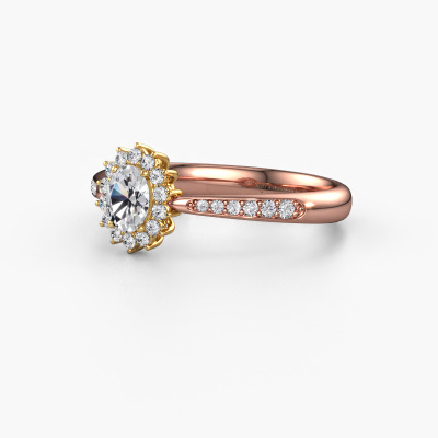 La bague de fiançailles présentée ci-dessus a été nommée Tilly ovl 2. Nous appelons ce type de bague de fiançailles une bague entourage, dans laquelle de petites pierres précieuses sont serties autour de la pierre centrale dans un sertissage ouvert. Cette bague de fiançailles forgée en or 14 Carat a un diamant ovale de 0.35 crt en guise de pierre centrale qui est aussi entourée de petits diamants synthétiques. Si vous regardez cette bague de fiançailles entourage forgée en or rose, vous avez l'impression que les plus petites pierres précieuses, ainsi que le grand diamant, fusionnent en une seule grosse pierre scintillante, sous la forme d’une belle fleur. Cette bague de fiançailles peut aussi avoir un autre nom tel que bague fleur ou la bague rosette. Cependant, les diamants synthétiques plus petits doivent tous être sertis de la même manière, afin que la lumière passant au travers du diamant ne soit pas interrompue et qu'une véritable unité soit créée. Voici donc le travail de nos maîtres orfèvres. Avec la plus grande précision, chaque diamant soigneusement sélectionné est serti à la main dans la bague de fiançailles. Toujours et encore, la bague de fiançailles est surveillée de près sous la lumière pour voir si l'effet spécial désiré est toujours visible. Qu'y a-t-il dorénavant de plus beau qu'une bague de fiançailles classiques conçue par vous-même et fabriquée à la main par nous. Vous pouvez personnaliser chaque modèle avec les différents métaux précieux et pierres précieuses. De cette façon, vous pourrez créer une bague de fiançailles unique. Cette bague peut être mise en place de plusieurs façons. Bien sûr, vous pouvez toujours nous contacter et nous serons heureux de vous aider à composer votre bague de fiançailles classiques Tilly ovl 2. Vous aimez le design, mais vous souhaitez tout de même quelque chose qui vous convienne plus, ou bien vous souhaitez une pierre précieuse dans les bijoux que vous ne pouvez pas choisir sur notre site, contactez-nous et nous vous aiderons.Notre équipe ajoute quotidiennement de nouveaux modèles à notre collection en ligne. Nos designers et orfèvres travaillent ensemble pour créer le meilleur design. Nous nous efforçons d'offrir une collection diversifiée de bijoux. Peut-être avez-vous déjà en tête un bijou en particulier ? Un bijou que vous avez trouvé quelque part. Veuillez nous contacter pour une consultation gratuite. Nous vous ferons une offre, basée sur un rapport qualité / prix juste, qui vous déconcertera.Pour vous faciliter la tâche, vous pouvez facilement nous retourner tout bijou commandé dans les 30 jours suivant la livraison.