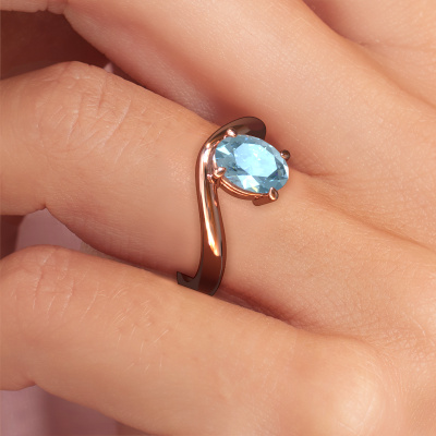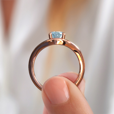 Le nom de cette bague de fiançailles est Femke OVL. Elle est forgée en or 14 Carat et est sertie d'un diamant synthétique bleu de 8x6 mm. Votre petit-amie aime-t-elle les accessoires au look unique ? Ou bien voudriez-vous lui montrer qu'elle ne