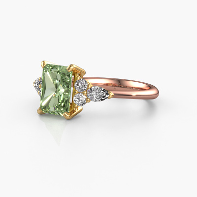 Le nom de cette bague de fiançailles est Melani RAD. Elle est forgée en or 14 Carat et est sertie d'un diamants synthétiques vert de 8x6 mm. Votre petit-amie aime-t-elle les accessoires au look unique ? Ou bien voudriez-vous lui montrer qu'elle ne mérite que le meilleur bijou ? Dans cette bague de fiançailles forgée en or rose, le savoir-faire, l'amour et la passion se mêlent aux techniques d’orfèvres les plus récentes. Il faut un œil expérimenté, de la patience et une main habile pour concevoir parfaitement cette bague de fiançailles dans les moindres détails. Et c'est exactement le travail que nos orfèvres recherchent ! Le sertissage de ces diamants synthétiques vert soigneusement sélectionnés donne à la bague de fiançailles élégants forgée en or rose une allure supplémentaire. Le style peut être adapté au goût de votre petite amie grâce à un large choix de métaux précieux et de pierres précieuses. De cette manière, vous pouvez créer une bague de fiançailles unique pour la femmes la plus unique de votre vie ! Ce bijou est unique, car vous pouvez concevoir ces bagues en fonction de vos souhaits.Nos orfèvres ne fabriqueront votre bague de fiançailles qu'une fois que vous l'aurez commandée. Nous ne faisons pas de stock. L'avantage de cela est que nous n'avons pas à inclure les frais de stockage dans nos prix, et nous pouvons donc vous offrir des bijoux à un prix très bas. Avez-vous déjà des bague de fiançailles spécifiques en tête ? Une bague de fiançailles que vous avez vu quelque part. N'hésitez pas à nous faire part de vos souhaits et nous transformerons votre design en des bague de fiançailles uniques. Vous êtes en mesure de suivre l'évolution de la conception de vos bague de fiançailles car nous utilisons des dessins en 3D. Cela vous donnera un aperçu réaliste de votre design. Nous vous enverrons volontiers une offre sans engagement basée sur un rapport qualité / prix juste. Elle va vous étonner.Pour vous faciliter la tâche, vous pouvez facilement nous retourner tout bijou commandé dans les 30 jours suivant la livraison.