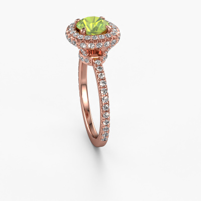 La bague de fiançailles mentionnée ci-dessus est nommée Talitha RND. Nous appelons ce type de bague de fiançailles une bague Halo. La bague de fiançailles est forgée en or 14 Carat et comporte un péridot ronds de la de 6.5 mm et autour duquel sont sertis de petits diamants synthétiques. La largeur de cette bague de fiançailles halo forgée en or rose exclusives vient des plus petites pierres précieuses qui sont serties autour du large péridot central. C’est également ce à partir de quoi cette belle bague de fiançailles tire son nom : halo signifie halo et c’est aussi l’effet que rendent les pierres précieuses plus petites. Cependant, ces pierres précieuses plus petites doivent toutes être serties de la même manière, afin que la lumière ne soit pas seulement introduite dans le péridot et qu’un véritable halo de lumière soit créé. Et c'est ce que font nos maîtres orfèvres. Avec la plus grande précision, chaque péridot soigneusement sélectionné est placé à la main dans la bague de fiançailles. Encore et encore, la bague de fiançailles est maintenue à la lumière pour voir si l'effet spécial est toujours visible. Le résultat est une bague de fiançailles unique, où le péridot choisi devient littéralement le centre brillants. Vous pouvez imaginer que cette bague de fiançailles est vraiment une bague de fiançailles significative à offrir à votre amour de la vie ! Le jour où vous montrez qu’elle est votre centre brillants ! Vous avez peut-être remarqué que nos prix sont en moyenne inférieurs de 30% à ceux d'un autre bijoutier. Et ce alors que la qualité de nos bijoux est même plus élevée dans la plupart des cas ! En effet, nos orfèvres fabriquent votre bague de fiançailles directement dans notre propre atelier. Cela signifie que nous n'avons pas à inclure des frais de stocks coûteux et que nous pouvons travailler n'importe quel détail directement sur votre bague de fiançailles.Notre équipe ajoute quotidiennement de nouveaux modèles à notre collection en ligne. Nos designers et orfèvres travaillent ensemble pour créer le meilleur design. Nous nous efforçons d'offrir une collection diversifiée de bijoux. Peut-être avez-vous déjà en tête un bijou en particulier ? Un bijou que vous avez trouvé quelque part. Veuillez nous contacter pour une consultation gratuite. Nous vous ferons une offre, basée sur un rapport qualité / prix juste, qui vous déconcertera.Pour vous faciliter la tâche, vous pouvez facilement nous retourner tout bijou commandé dans les 30 jours suivant la livraison.