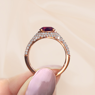 Le nom de cette bague de fiançailles est Lovella. Elle est forgée en or 14 Carat et est sertie d'un rhodolite de 7 mm. Votre petit-amie aime-t-elle les accessoires au look unique ? Ou bien voudriez-vous lui montrer qu'elle ne mérite que le meilleur bijou ? Dans cette bague de fiançailles forgée en or rose, le savoir-faire, l'amour et la passion se mêlent aux techniques d’orfèvres les plus récentes. Il faut un œil expérimenté, de la patience et une main habile pour concevoir parfaitement cette bague de fiançailles dans les moindres détails. Et c'est exactement le travail que nos orfèvres recherchent ! Le sertissage de ces rhodolites soigneusement sélectionnés donne à la bague de fiançailles micropavé forgée en or rose une allure supplémentaire. Le style peut être adapté au goût de votre petite amie grâce à un large choix de métaux précieux et de pierres précieuses. De cette manière, vous pouvez créer une bague de fiançailles unique pour la femmes la plus unique de votre vie ! Ce bijou est spécialement conçues pour vous, avec une attention particulière portée aux détails et au design.En combinant les dernières techniques modernes, associées à une fabrication ancienne, nous sommes en mesure de fabriquer nos bagues de fiançailles dans notre propre studio. Chaque bijou est fabriqué sur commande. Ceci est avantageux car nous sommes en mesure de vous proposer un prix que vous ne trouverez nulle part ailleurs. Notre équipe ajoute quotidiennement de nouveaux modèles à notre collection en ligne. Nos designers et orfèvres travaillent ensemble pour créer le meilleur design. Nous nous efforçons d'offrir une collection diversifiée de bijoux. Peut-être avez-vous déjà en tête un bijou en particulier ? Un bijou que vous avez trouvé quelque part. Veuillez nous contacter pour une consultation gratuite. Nous vous ferons une offre, basée sur un rapport qualité / prix juste, qui vous déconcertera.Pour vous faciliter la tâche, vous pouvez facilement nous retourner tout bijou commandé dans les 30 jours suivant la livraison.
