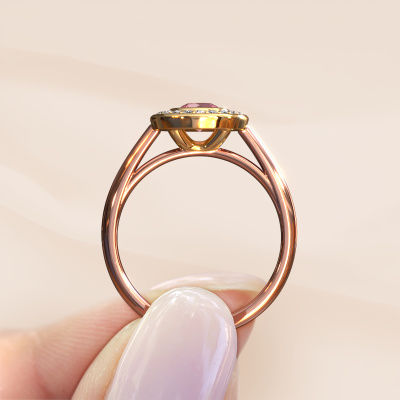 La bague de fiançailles mentionnée ci-dessus est nommée Noud 1 RND. Nous appelons ce type de bague de fiançailles une bague Halo. La bague de fiançailles est forgée en or 14 Carat et comporte un rose tourmaline ronds de la de 4.7 mm et autour duquel sont sertis de petits diamants. La largeur de cette bague de fiançailles halo forgée en or rose traditionnelles vient des plus petites pierres précieuses qui sont serties autour du large rose tourmaline central. C’est également ce à partir de quoi cette belle bague de fiançailles tire son nom : halo signifie halo et c’est aussi l’effet que rendent les pierres précieuses plus petites. Cependant, ces pierres précieuses plus petites doivent toutes être serties de la même manière, afin que la lumière ne soit pas seulement introduite dans le rose tourmaline et qu’un véritable halo de lumière soit créé. Et c'est ce que font nos maîtres orfèvres. Avec la plus grande précision, chaque rose tourmaline soigneusement sélectionné est placé à la main dans la bague de fiançailles. Encore et encore, la bague de fiançailles est maintenue à la lumière pour voir si l'effet spécial est toujours visible. Le résultat est une bague de fiançailles unique, où le rose tourmaline choisi devient littéralement le centre brillants. Vous pouvez imaginer que cette bague de fiançailles est vraiment une bague de fiançailles significative à offrir à votre amour de la vie ! Le jour où vous montrez qu’elle est votre centre brillants ! En combinant les dernières techniques modernes, associées à une fabrication ancienne, nous sommes en mesure de fabriquer nos bagues de fiançailles dans notre propre studio. Chaque bijou est fabriqué sur commande. Ceci est avantageux car nous sommes en mesure de vous proposer un prix que vous ne trouverez nulle part ailleurs.Avez-vous déjà des bague de fiançailles spécifiques en tête ? Une bague de fiançailles que vous avez vu quelque part. N'hésitez pas à nous faire part de vos souhaits et nous transformerons votre design en des bague de fiançailles uniques. Vous êtes en mesure de suivre l'évolution de la conception de vos bague de fiançailles car nous utilisons des dessins en 3D. Cela vous donnera un aperçu réaliste de votre design. Nous vous enverrons volontiers une offre sans engagement basée sur un rapport qualité / prix juste. Elle va vous étonner.Pour vous faciliter la tâche, vous pouvez facilement nous retourner tout bijou commandé dans les 30 jours suivant la livraison.