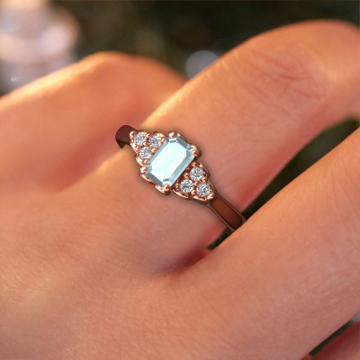 Cette bague de fiançailles porte le nom Myrna EME. Cette bague de fiançailles forgée en or 14 Carat est sertie d’un aigue-marine de 6x4 mm. Cette bague de fiançailles forgée en or rose en filigrane est un chef-d’œuvre en soi. Un magnifique design de fils sophistiqués qui forment un ensemble unique. Et simultanément, un beau défi pour nos orfèvres passionnés ! Avec un grand dévouement, de la patience et une grande précision, ils forgent cette bague de fiançailles spécialement pour votre bien-aimée. Tout est fabriqué à la main, de telle sorte que chaque fil puisse être parfaitement travaillé dans les moindres détails. Un long processus de forgeage, de travail et de polissage, jusqu'à ce que le maître forgeron, gardant la bague de fiançailles à la lumière, soit satisfait du résultat... Une bague de fiançailles parfaite dont il est vraiment fier. C'est la raison pour laquelle cette bague de fiançailles en filigrane vintage est aussi une large bague de fiançailles à offrir à l'amour de votre vie ! Vous allez bientôt faire votre demande à cette personne, et cette bague de fiançailles unique n’est faite que pour cette seule personne ! Merveilleux, non ? Ce bijou est unique, car vous pouvez concevoir ces bagues en fonction de vos souhaits.Qu'y a-t-il dorénavant de plus beau qu'une bague de fiançailles vintage conçue par vous-même et fabriquée à la main par nous. Vous pouvez personnaliser chaque modèle avec les différents métaux précieux et pierres précieuses. De cette façon, vous pourrez créer une bague de fiançailles unique. Cette bague peut être mise en place de plusieurs façons. Bien sûr, vous pouvez toujours nous contacter et nous serons heureux de vous aider à composer votre bague de fiançailles vintage Myrna EME. Vous aimez le design, mais vous souhaitez tout de même quelque chose qui vous convienne plus, ou bien vous souhaitez une pierre précieuse dans les bijoux que vous ne pouvez pas choisir sur notre site, contactez-nous et nous vous aiderons.Avez-vous déjà des bague de fiançailles spécifiques en tête ? Une bague de fiançailles que vous avez vu quelque part. N'hésitez pas à nous faire part de vos souhaits et nous transformerons votre design en des bague de fiançailles uniques. Vous êtes en mesure de suivre l'évolution de la conception de vos bague de fiançailles car nous utilisons des dessins en 3D. Cela vous donnera un aperçu réaliste de votre design. Nous vous enverrons volontiers une offre sans engagement basée sur un rapport qualité / prix juste. Elle va vous étonner.Pour vous faciliter la tâche, vous pouvez facilement nous retourner tout bijou commandé dans les 30 jours suivant la livraison.