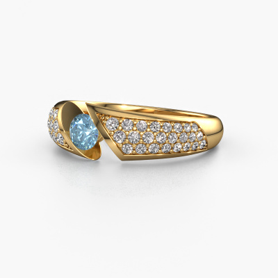 Nous avons donné le nom Hojalien 3 à la bague de fiançailles mentionnée ci-dessous. Nous appelons ce type de bague de fiançailles une bague Pavé. Toutes les petites pierres précieuses sont serties les unes à côté des autres pour que la bague de fiançailles soit particulièrement brillant. Cette bague de fiançailles forgée en or 14 Carat est sertie d’un diamant synthétique bleu de 4.2 mm. Que voulez-vous dire à l'amour de votre vie lorsque vous lui ferez votre demande en mariage ? De magnifiques diamant synthétique bleu sont sertis autour de cette bague de fiançailles forgée en or jaune, en signe de votre amour infini l’un pour l’autre. Les pierres précieuses sont soigneusement choisies et serties avec grande précision par notre orfèvre. Ce n'est en effet que lorsque les diamant synthétique bleu sont sertis les uns à côté des autres que vous pouvez créer le bel effet de lumière qui caractérise si bien cette bague de fiançailles. L'orfèvre garde votre bague de fiançailles à la lumière tout le temps pendant le forgeage et le polissage traditionnels jusqu'à ce qu'il détienne enfin une bague de fiançailles parfaite. La bague est composée par vous et spécialement créée pour faire briller votre amoureuse ! Parce qu'il n'y a qu'une seule personne pour qui cette bague de fiançailles unique est faite et dédiée ! Avec ce chef-d'œuvre rempli de signification, symbole de l'infini, vous lui dites que votre amour pour elle est infini et que vous souhaitez partager votre future avec elle pour toujours. Et quelle sera sa réponse à cela ? Ce bijou est fabriquées avec passion et amour par l'un de nos maîtres orfèvres.