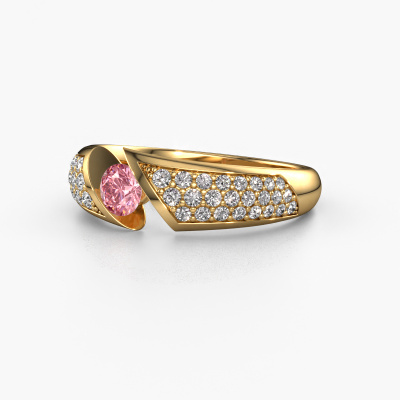 Nous avons donné le nom Hojalien 3 à la bague de fiançailles mentionnée ci-dessous. Nous appelons ce type de bague de fiançailles une bague Pavé. Toutes les petites pierres précieuses sont serties les unes à côté des autres pour que la bague de fiançailles soit particulièrement brillant. Cette bague de fiançailles forgée en or 14 Carat est sertie d’un diamant synthétique roze de 4.2 mm. Que voulez-vous dire à l'amour de votre vie lorsque vous lui ferez votre demande en mariage ? De magnifiques diamant synthétique roze sont sertis autour de cette bague de fiançailles forgée en or jaune, en signe de votre amour infini l’un pour l’autre. Les pierres précieuses sont soigneusement choisies et serties avec grande précision par notre orfèvre. Ce n'est en effet que lorsque les diamant synthétique roze sont sertis les uns à côté des autres que vous pouvez créer le bel effet de lumière qui caractérise si bien cette bague de fiançailles. L'orfèvre garde votre bague de fiançailles à la lumière tout le temps pendant le forgeage et le polissage traditionnels jusqu'à ce qu'il détienne enfin une bague de fiançailles parfaite. La bague est composée par vous et spécialement créée pour faire briller votre amoureuse ! Parce qu'il n'y a qu'une seule personne pour qui cette bague de fiançailles unique est faite et dédiée ! Avec ce chef-d'œuvre rempli de signification, symbole de l'infini, vous lui dites que votre amour pour elle est infini et que vous souhaitez partager votre future avec elle pour toujours. Et quelle sera sa réponse à cela ? Ce bijou est fabriquées avec passion et amour par l'un de nos maîtres orfèvres.