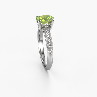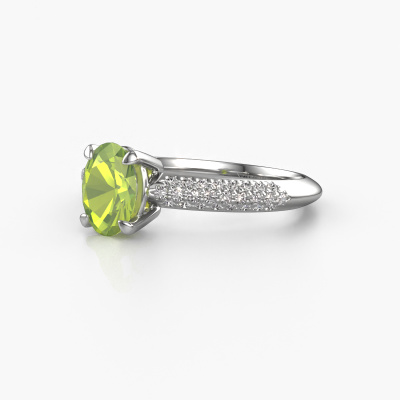 Nous avons donné le nom Morane OVL à la bague de fiançailles mentionnée ci-dessous. Nous appelons ce type de bague de fiançailles une bague Pavé. Toutes les petites pierres précieuses sont serties les unes à côté des autres pour que la bague de fiançailles soit particulièrement brillant. Cette bague de fiançailles forgée en or est sertie d’un péridots de 7,5x5,5 mm. Que voulez-vous dire à l'amour de votre vie lorsque vous lui ferez votre demande en mariage ? De magnifiques péridots sont sertis autour de cette bague de fiançailles forgée en platine, en signe de votre amour infini l’un pour l’autre. Les pierres précieuses sont soigneusement choisies et serties avec grande précision par notre orfèvre. Ce n'est en effet que lorsque les péridots sont sertis les uns à côté des autres que vous pouvez créer le bel effet de lumière qui caractérise si bien cette bague de fiançailles. L'orfèvre garde votre bague de fiançailles à la lumière tout le temps pendant le forgeage et le polissage traditionnels jusqu'à ce qu'il détienne enfin une bague de fiançailles parfaite. La bague est composée par vous et spécialement créée pour faire briller votre amoureuse ! Parce qu'il n'y a qu'une seule personne pour qui cette bague de fiançailles unique est faite et dédiée ! Avec ce chef-d'œuvre rempli de signification, symbole de l'infini, vous lui dites que votre amour pour elle est infini et que vous souhaitez partager votre future avec elle pour toujours. Et quelle sera sa réponse à cela ? Ce bijou est faite pour briller sur votre doigt, chaque bijou est fabriqué à la main par nos orfèvres.Qu'y a-t-il dorénavant de plus beau qu'une bague de fiançailles modernes conçue par vous-même et fabriquée à la main par nous. Vous pouvez personnaliser chaque modèle avec les différents métaux précieux et pierres précieuses. De cette façon, vous pourrez créer une bague de fiançailles unique. Cette bague peut être mise en place de plusieurs façons. Bien sûr, vous pouvez toujours nous contacter et nous serons heureux de vous aider à composer votre bague de fiançailles modernes Morane OVL. Vous aimez le design, mais vous souhaitez tout de même quelque chose qui vous convienne plus, ou bien vous souhaitez une pierre précieuse dans les bijoux que vous ne pouvez pas choisir sur notre site, contactez-nous et nous vous aiderons.Notre équipe de designers talentueux et passionnés ajoute chaque jour de nouveaux modèles bague de fiançailles à notre collection en ligne. Notre objectif est de pouvoir vous offrir une grande variété de bijoux. N'hésitez pas à demander un devis si vous avez des souhaits spécifiques pour votre bague de fiançailles. Nous garantissons de vous faire une offre que vous ne pourrez pas refuser.Pour vous faciliter la tâche, vous pouvez facilement nous retourner tout bijou commandé dans les 30 jours suivant la livraison.