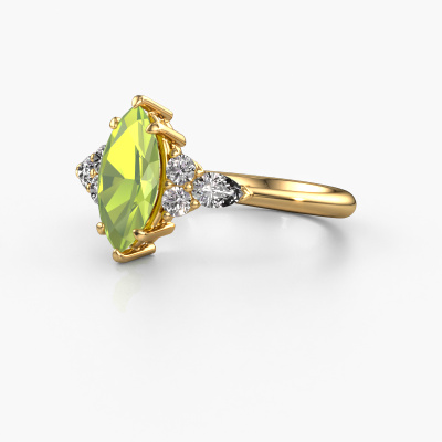 Cette bague de fiançailles porte le nom Melani MRQ. Cette bague de fiançailles forgée en or 14 Carat est sertie d’un péridot de 11x5.5 mm. Qu'est-ce qui rend votre relation unique ? Qu'est-ce que qui fait que vous souhaitiez qu’elle devienne votre femmes ? Cet anneau unique que vous avez ensemble peut être reflété dans une bague unique. Une bague de fiançailles entourage unique qui est seulement créée pour elle. Et c'est la raison pour laquelle cette bague de fiançailles lui ira parfaitement. Chaque détail de cette bague de fiançailles ci-dessous forgée en or jaune sertie d’un péridot est composée, travaillée et polie à la main par notre orfèvre dans notre atelier. Le résultat final est une magnifique bague de fiançailles, unique et parfaitement forgée dans les moindres détails ! Ce résultat est ce que nos orfèvres recherchent à tout prix ! Ce bijou est faite spécialement pour vous, avec une attention particulière portée aux détails et au design.Saviez-vous que nous offrons la garantie du meilleur prix pour votre bague de fiançailles? Cela est possible car tous nos bijoux sont fabriqués à la main dans notre propre atelier. Nous n'avons pas de frais de stocks qui sont coûteux, et nous fabriquons votre bague uniquement une fois que vous l'avez commandée. Grâce au fait que nous ayons toute la production du bijou en main, nous pouvons vous informer sur toutes les caractéristiques de cette bague de fiançailles. C’est précisément parce que l’achat d’une bague en ligne est une expérience excitante que nous comprenons qu’il est plus confortable pour vous de connaître toutes les caractéristiques de votre bague.Avez-vous déjà des bague de fiançailles spécifiques en tête ? Une bague de fiançailles que vous avez vu quelque part. N'hésitez pas à nous faire part de vos souhaits et nous transformerons votre design en des bague de fiançailles uniques. Vous êtes en mesure de suivre l'évolution de la conception de vos bague de fiançailles car nous utilisons des dessins en 3D. Cela vous donnera un aperçu réaliste de votre design. Nous vous enverrons volontiers une offre sans engagement basée sur un rapport qualité / prix juste. Elle va vous étonner.Pour vous faciliter la tâche, vous pouvez facilement nous retourner tout bijou commandé dans les 30 jours suivant la livraison.